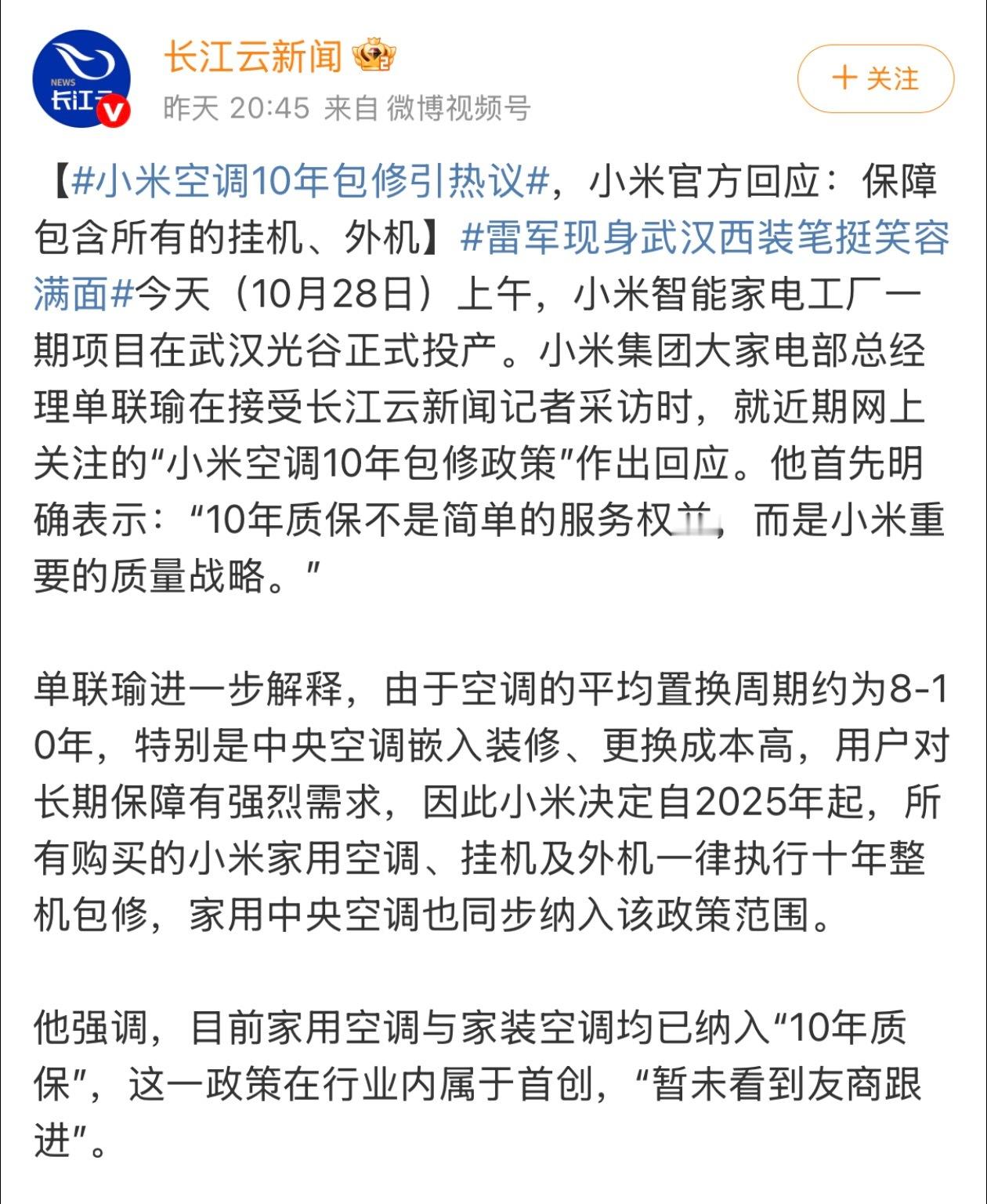 然后就是质保问题,哪有只保内机不保外机的啊,说这话的人不会觉得反直觉么,小米空调是内外机,甚至于中央空调都是10年质保,这点不用怀疑,官方都发了,肯定是要执行下去的,真的是求求了长点儿脑子啊某些人。。。