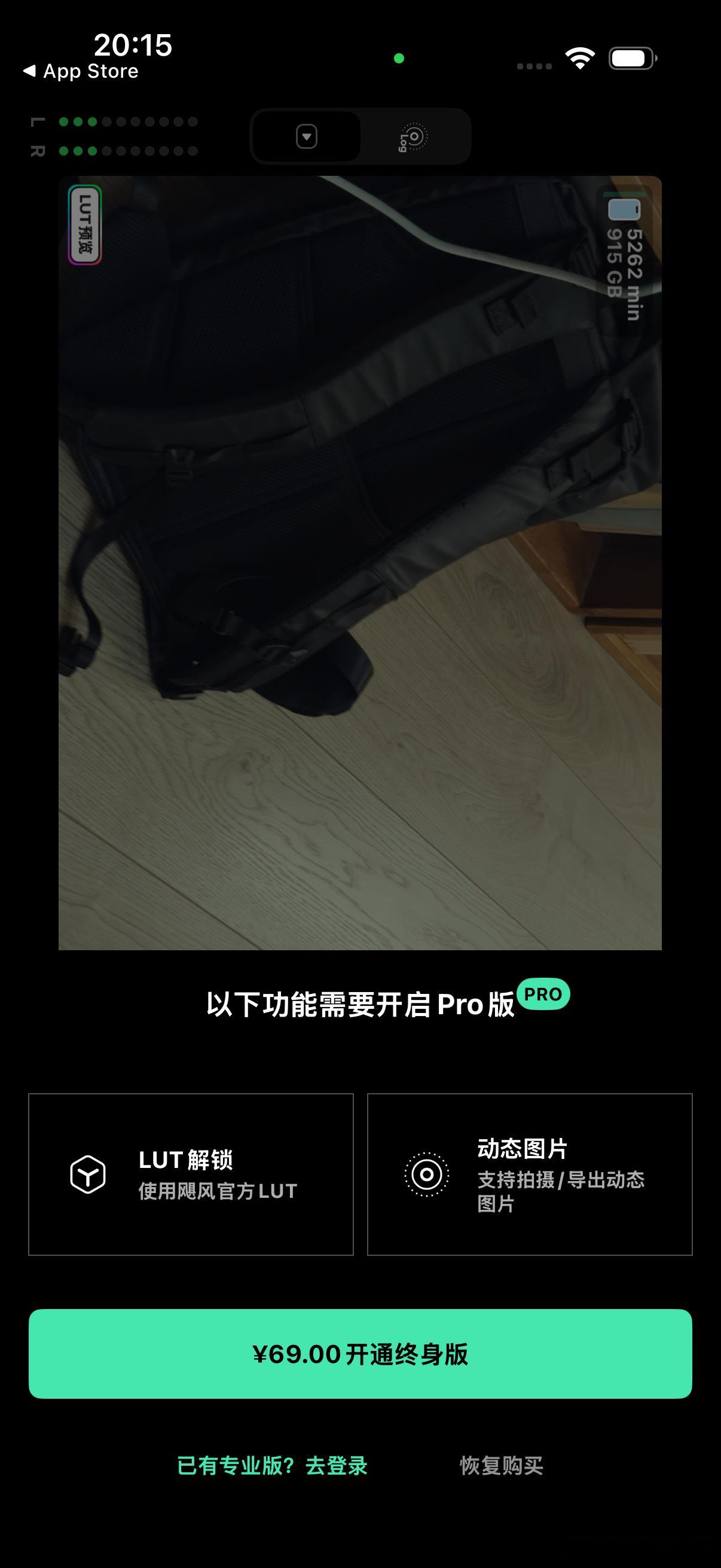 功能性上看起来挺好的,操作界面也很友好,可以拍Log2,也可以直接套用影视飓风的Lut,但想要用多一点的Lut就要开通Pro版,69元也不贵,应该不少影视飓风粉丝会买吧?