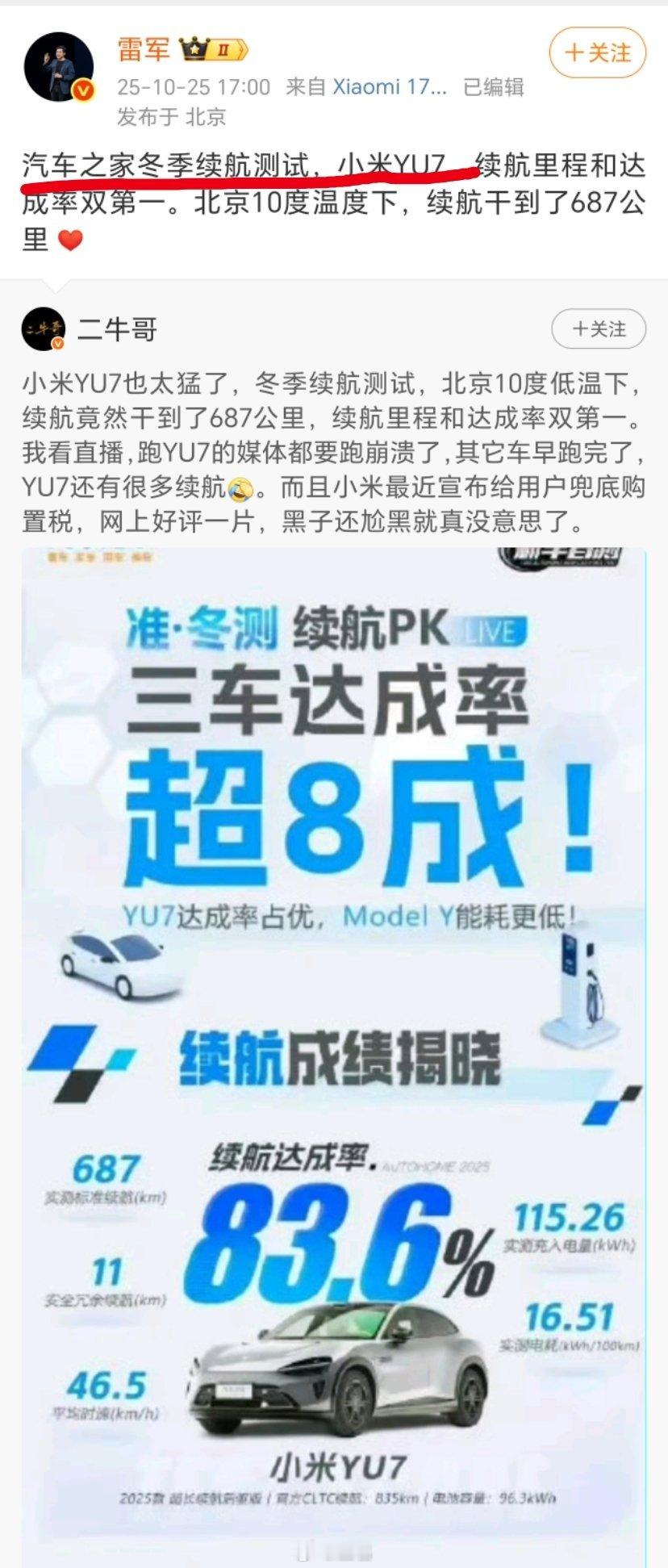小米冬测质疑这是汽车之家做的冬季续航测试,并不是小米的冬测……