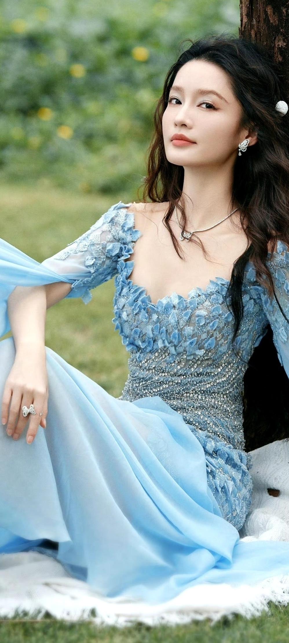 李沁,梦幻蓝裙,优雅迷人高级感写真推荐李沁明星穿搭女明星中,你感觉谁的气质