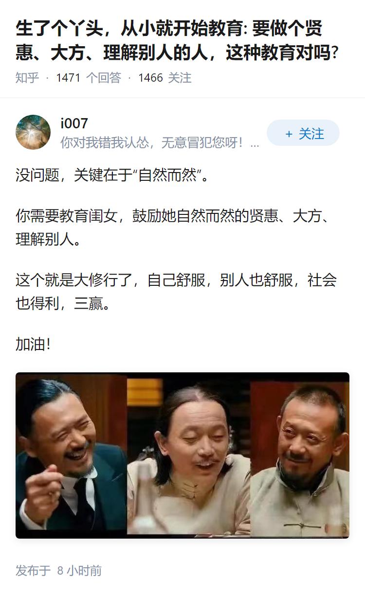 生了个丫头,从小就开始教育: 要做个贤惠、大方、理解别人的人,这种教育对吗?