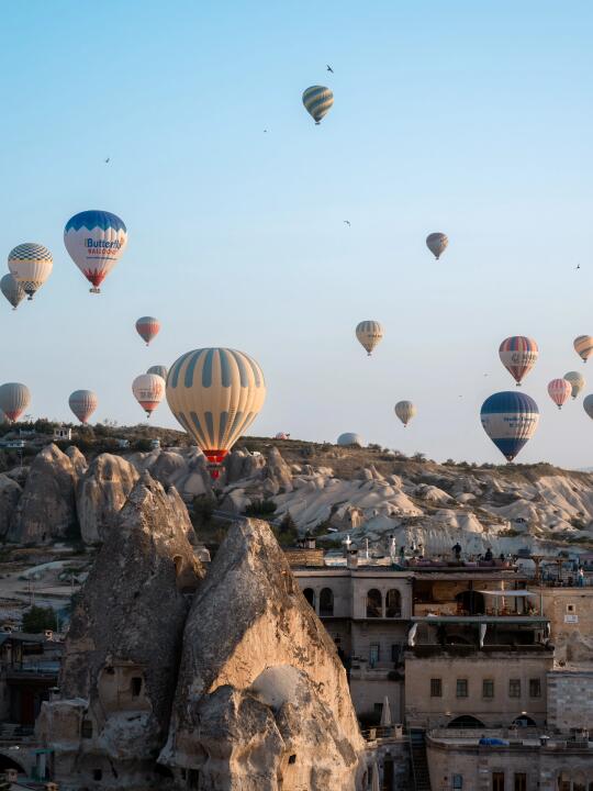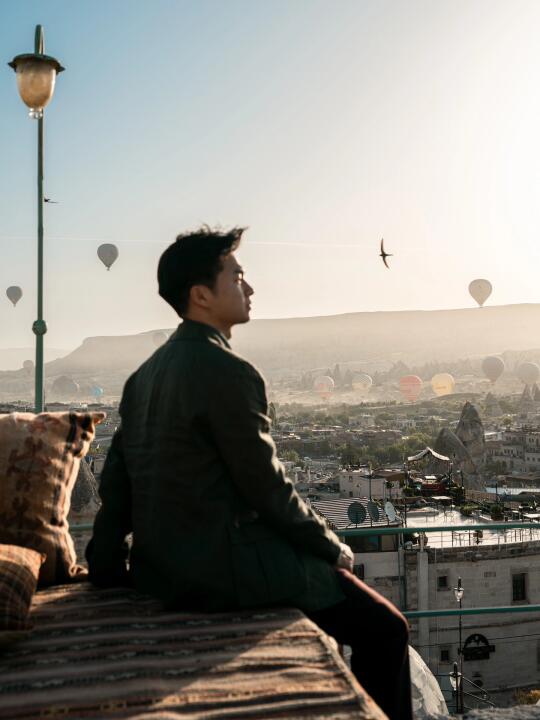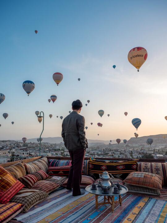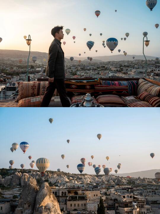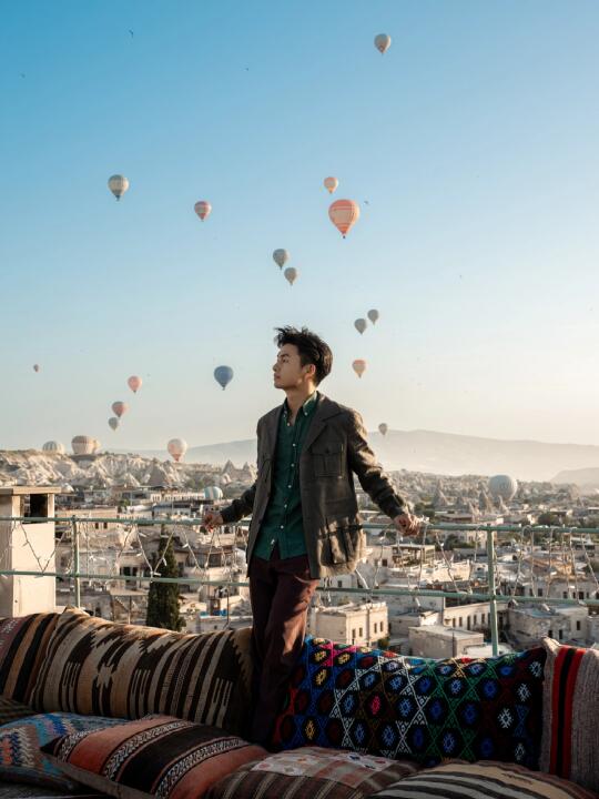 这是我在卡帕多奇亚最值得推荐的地方 “在浪漫土耳其旅行 没有拍到好看的热气球照片 简直白来” 分享给你 土耳其热气球拍照 我认为最好看、浪漫露台 · ⭐️地址: Charming Cave Hotel 在格雷梅小镇酒店中 拥有视野最广、最高的露台 除了能拍到所有热气球在你背后冉冉升起 还能拍到和热气球同框的人生大片 店家还特地布置了很local的装饰 真的超级出片 拍照累了 还可以坐在土耳其特色的毛毯上 享受热气球在空中飞舞的震撼风景