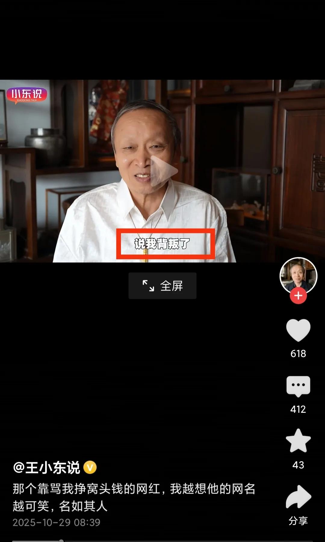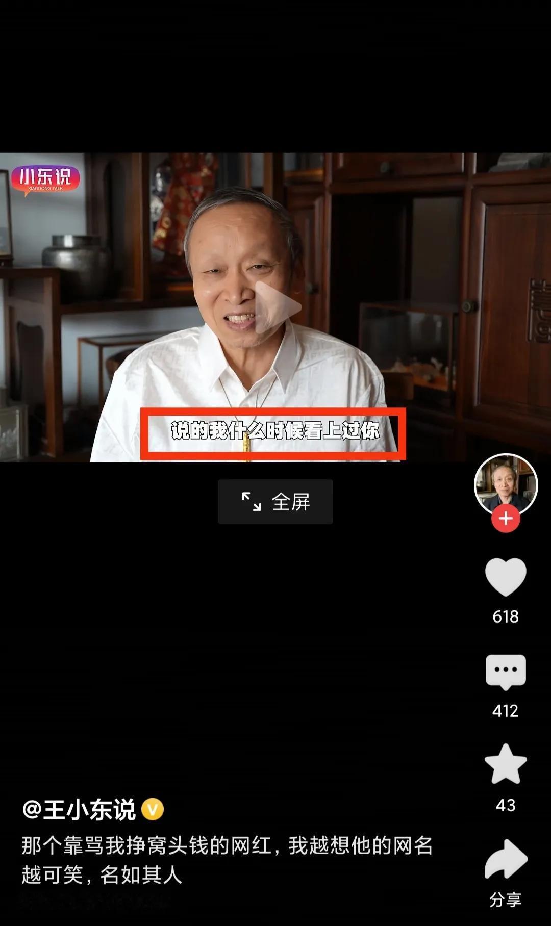 【王小东一世英名被胡适破防了】 胡适翘着二郎腿与老蒋交谈,足以让他名声大震,不畏权贵。 还有胡适对很多名人的破格提拔,资金资助,更是举不胜举。 最为清醒就是南渡,不但自己决心已定,还劝告很多学者一起南渡。 当然胡适不是完人,也有很多致命错误,但留给北大绝对是闪光耀眼的存在。 王小东批胡适,的确有点心血来潮,无论怎么解释也是徒劳,看来网友们心态也是爱憎分明,比较一致。 当然这次的确让王小东破防了,窝窝头钱,名字起的恰到好处等等。