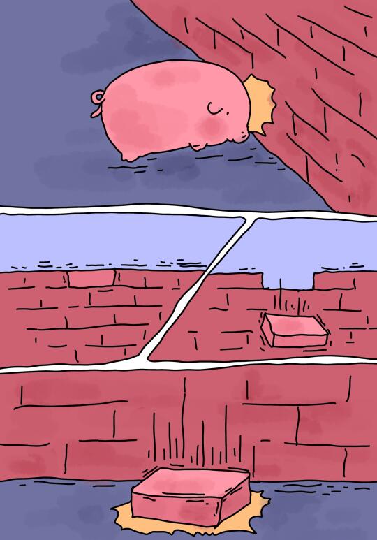 你撞南墙了 “是的,我知道” 你要学会拐弯 “我知道,但不能拐” 为什么一定要这样呢 “墙不就是用来撞的吗?” 治愈系漫画 治愈猪猪猪原创漫画轻漫计划 自由 一日一画 理想 励志 你有撞过南墙吗 [投票]