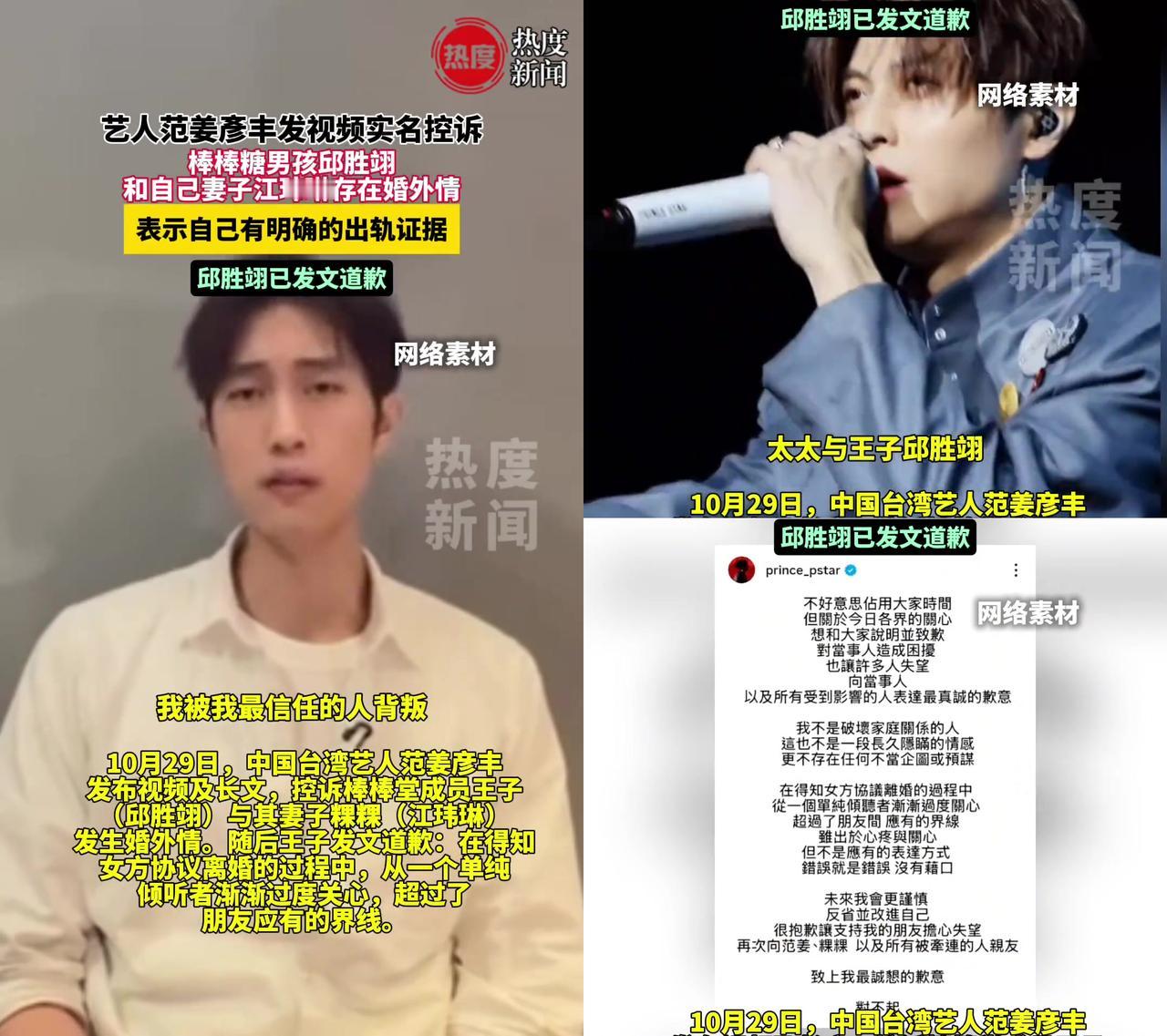 当年蹲在电视机前追《黑糖玛奇朵》的你,敢信“王子”邱胜翊现在要为“朋友妻”道歉? 范姜彦丰直接发视频控诉,说他插足自己和江玮琳的婚姻,还有实锤。 邱胜翊倒快,道歉说心疼朋友离婚才过度关心,越了界。 可大家哪买账, 有人骂“外号叫多了,真把自己当王子?” 有人吐槽“朋友妻也碰,这算什么偶像?” 还有人懵:“他不是和邓丽欣在恋爱吗?” 我真是服了,心疼是越界的理由?朋友的另一半是底线啊! 当年唱《爱情玛奇朵》的清纯男孩,怎么就忘了边界感? 你觉得朋友之间的关心,到底该有什么底线?是心疼就能越界的吗?