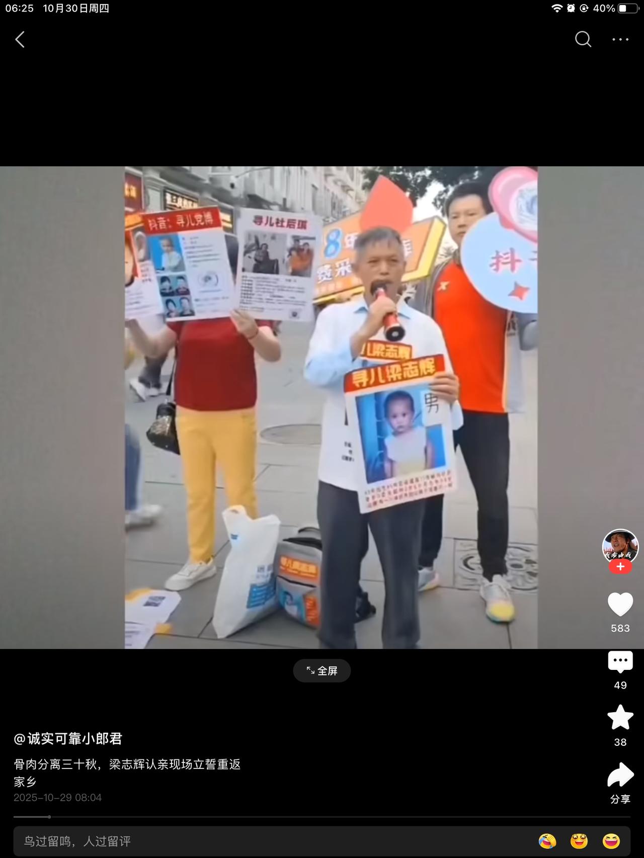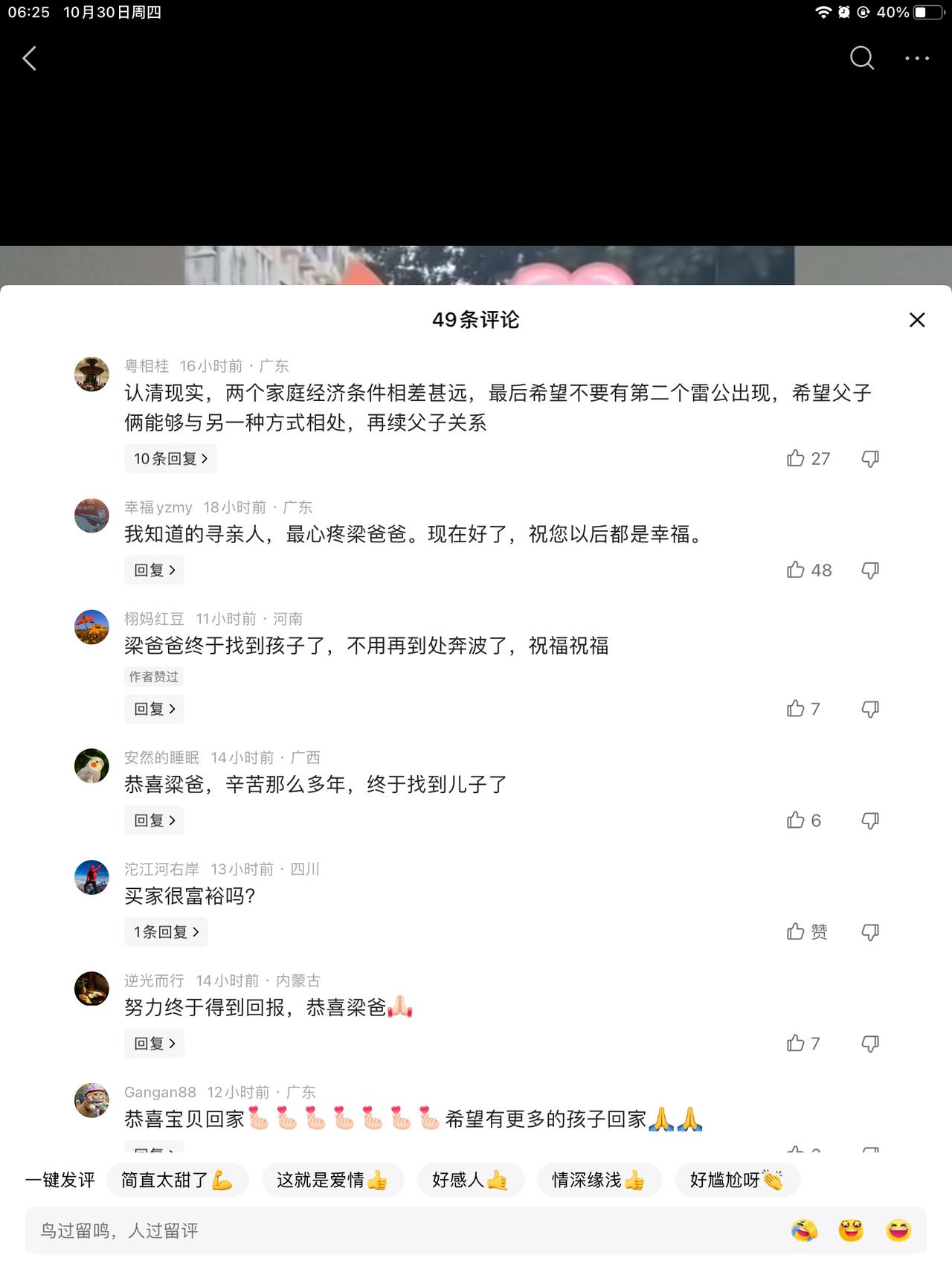 梁志辉爸爸找到儿子了。养家(不知道是不是买家,暂时这样叫)条件很好。孩子暂时回不