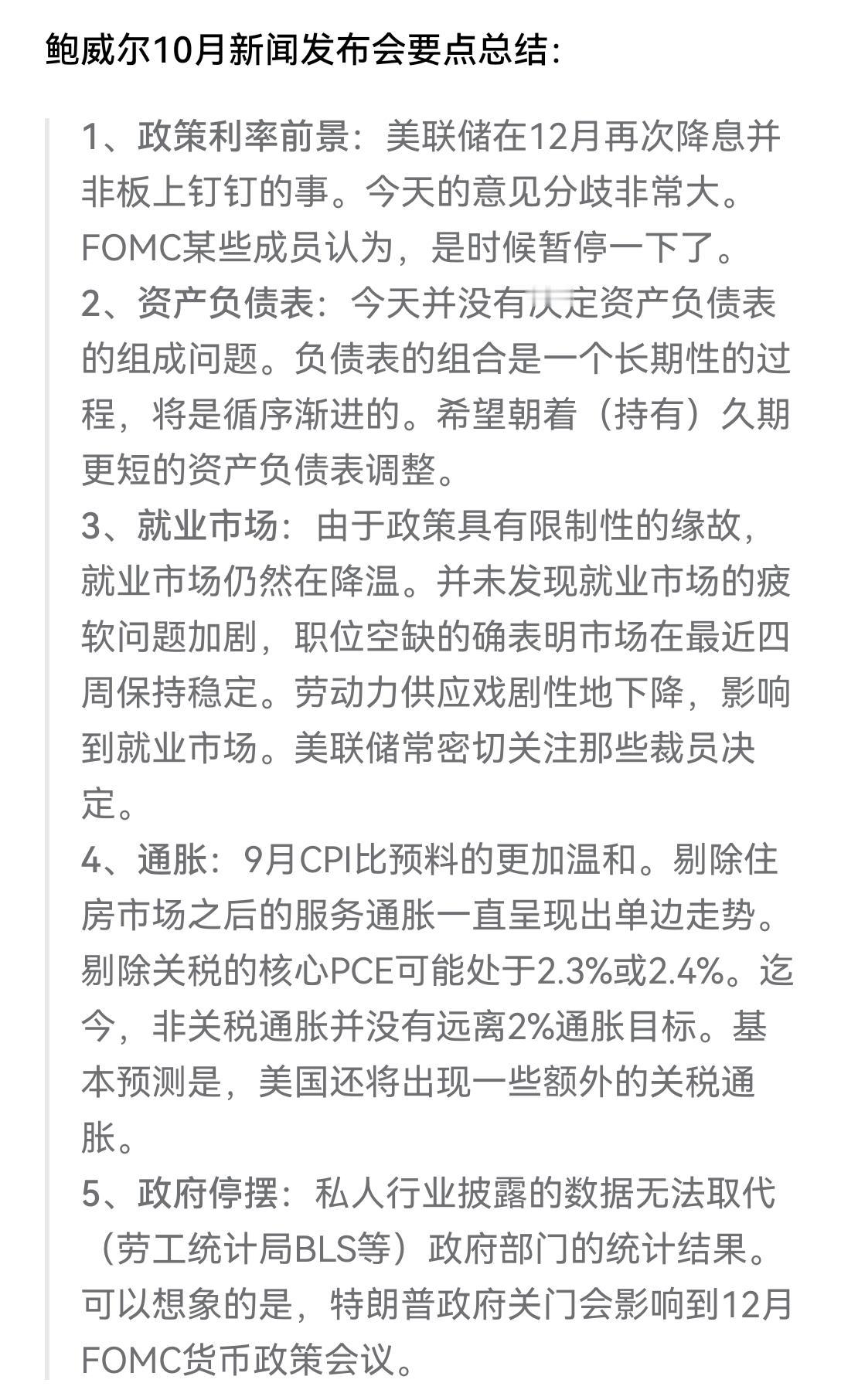 [吃瓜群众]美联储如期降息25个基点,完全在市场意料之中,没想到美股三大指数不涨反跌,最后勉强“涨跌互现”,原因是——鲍威尔还是叽叽歪歪的,压低了12月继续降息的预期[思考]看来,“川皇”🉐把刀架他脖子上,才能压住这老小子的桀骜不驯[灵光一闪]