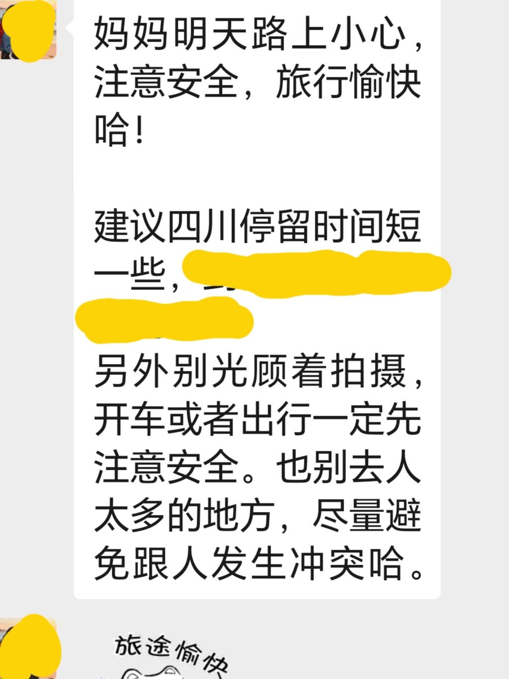 这次四川之行,是我今年第六次自驾了。出发前,闺女特意发微信来,千叮咛万嘱咐,让我路上一定注意安全,开车别着急。 别看就几句话,我这当妈的心里暖乎乎的。从怀胎十月到把她养育成人,这几十年的苦没白受。能有这么个孝顺懂事的孩子,才是父母最大的欣慰。