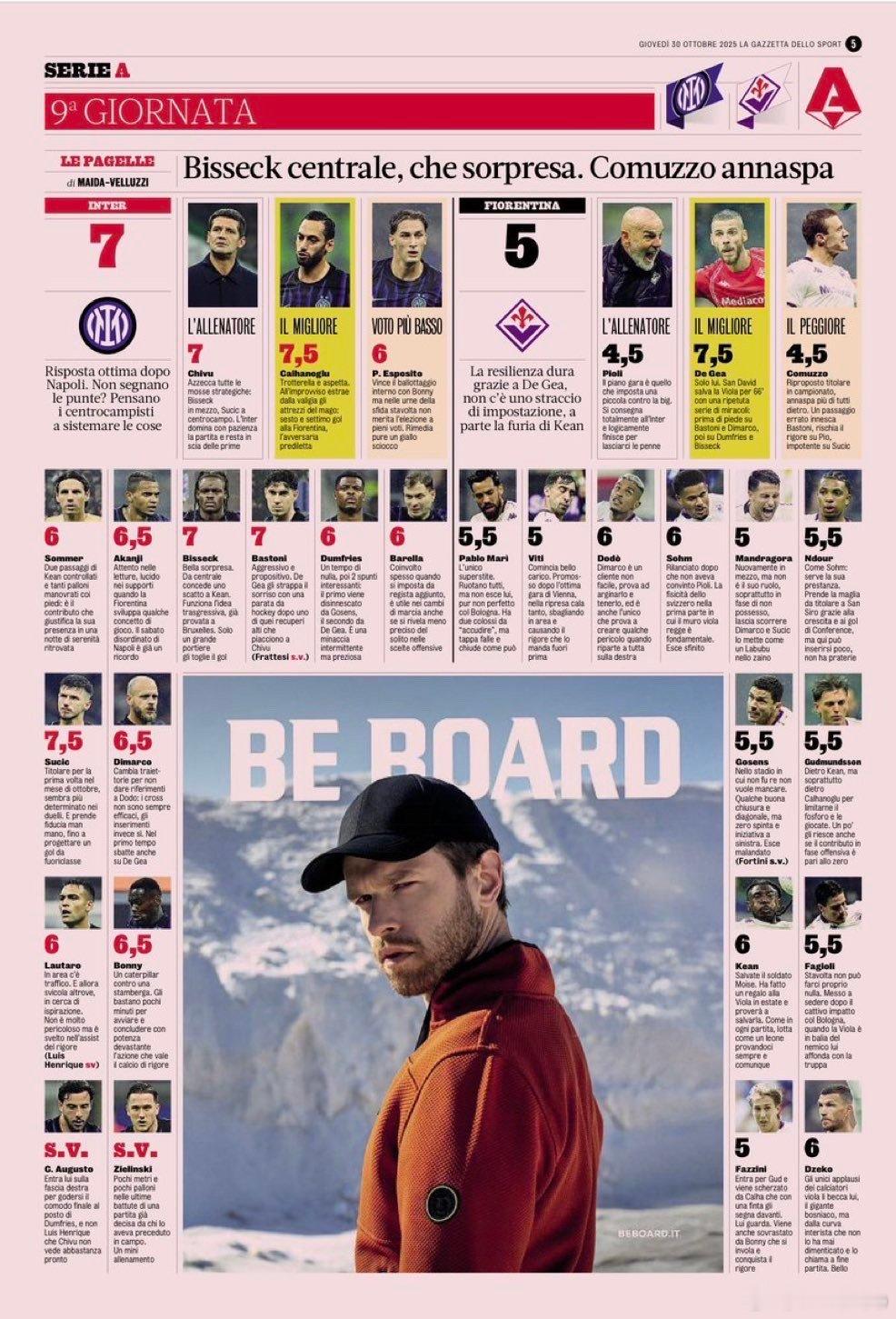 米兰体育报赛后评分如下国际米兰3比0佛罗伦萨热点解读
