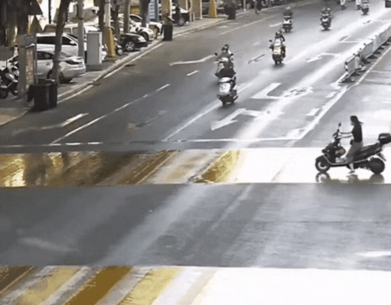 看着汽车过去,女子应该是闯红灯了!