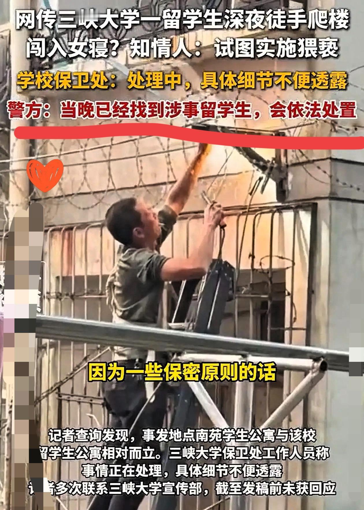 女寝二楼深夜爬进外国留学生?这事听着就后背发凉!湖北宜昌这名女生睡着觉被人摸醒,