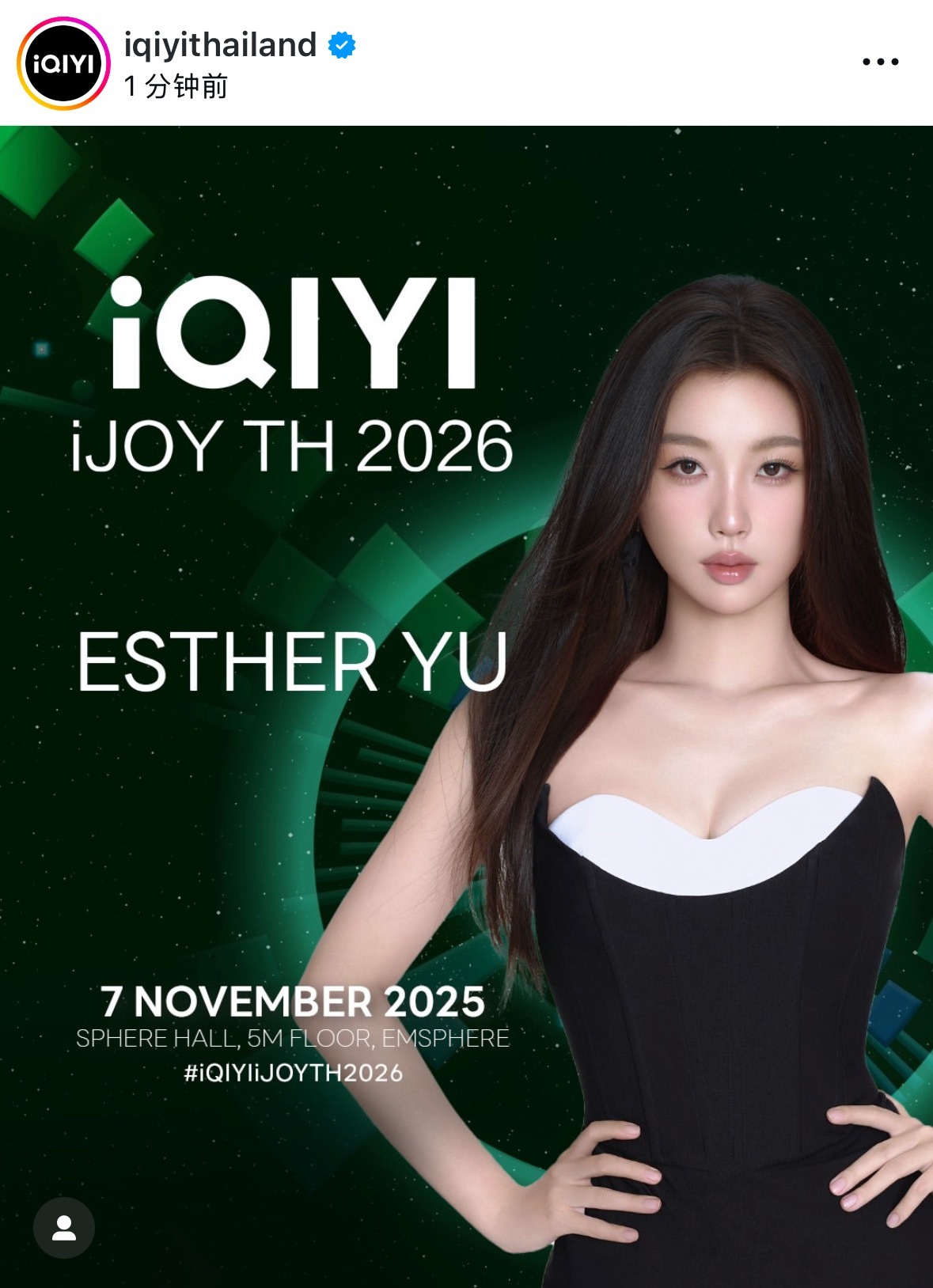 泰国鱼丝有福啦!咱家舒心11月7号即将出席泰国🇹🇭爱奇艺2026海外悦享会活动~虞书欣