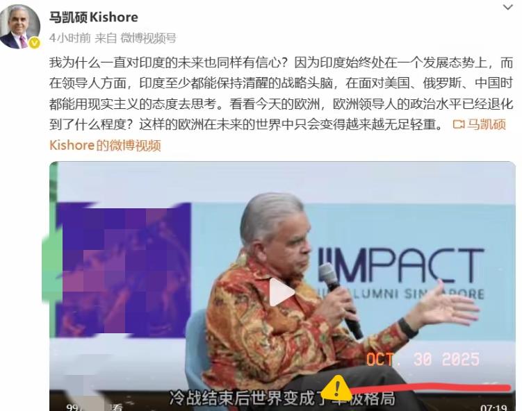 马凯硕有信心的地方,也正是我最担心的地方。 他认为,印度领导人始终保持清醒的战略头脑,在面对美国、俄罗斯、中国时都能用现实主义的态度去思考。他又以欧洲作为反面教材,认为欧洲领导人的政治水平已经大大退化,欧洲在未来的世界中只会变得越来越无足轻重。 这话戳中了关键——国家强大的核心是政治远见。乌克兰有资源有人才,就输在没有合格政治家;而印度历届领导人放在全球看确实算优秀,精英阶层水平也高,这才是最该警惕的。马凯硕说中印都在适应新世界,可印度的潜力藏在人口和地理优势里,一旦补上工业化短板,后果难料。 但印度也有硬伤,政策反复、基建落后让外资撤离,制造业空心化是大问题。可不能因为这些就放松,毕竟只要不犯战略错,假以时日仍可能崛起。帮印度工业化?那真是在给自个儿埋雷。 你觉得印度能跨过工业化的坎吗?它真能成为咱们的主要挑战吗?来聊聊~