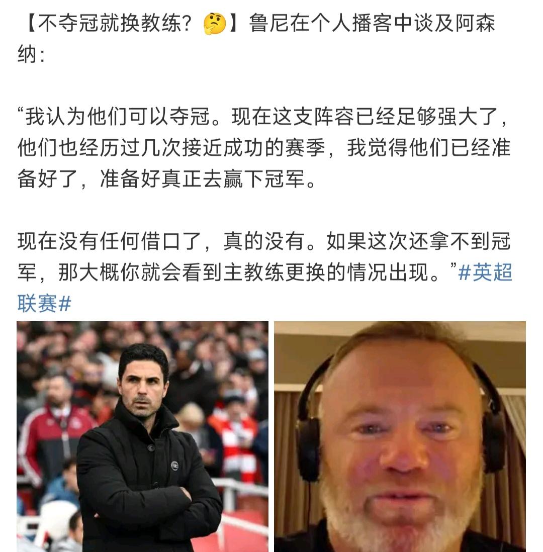 鲁尼认为阿森纳这么强,还不拿冠军就得换教练! 我觉得任何名帅在阿森纳都能夺冠。 阿尔特塔必须英超在手,冲击欧冠冠军! 全世界球迷都这么看吧。[呲牙]