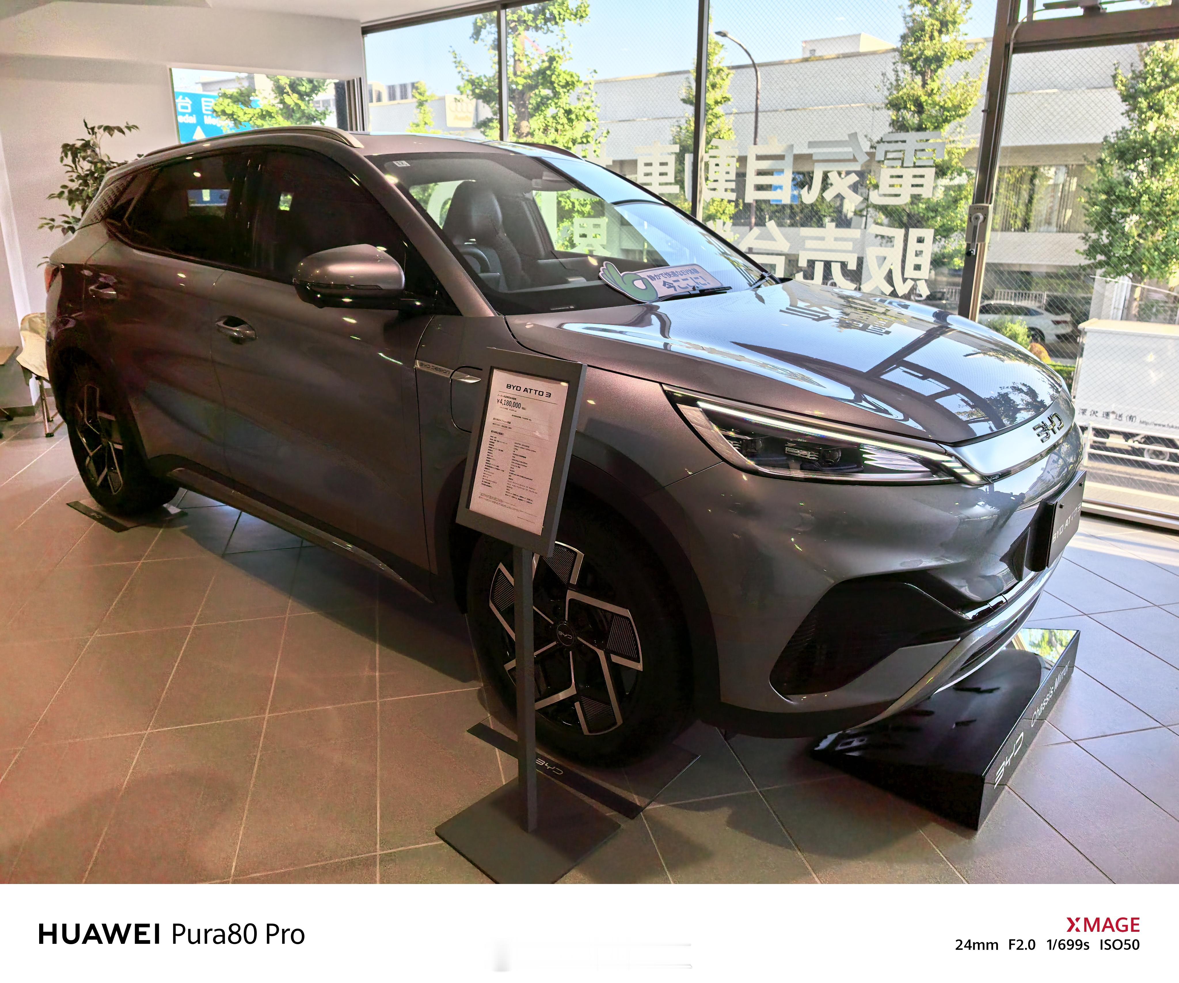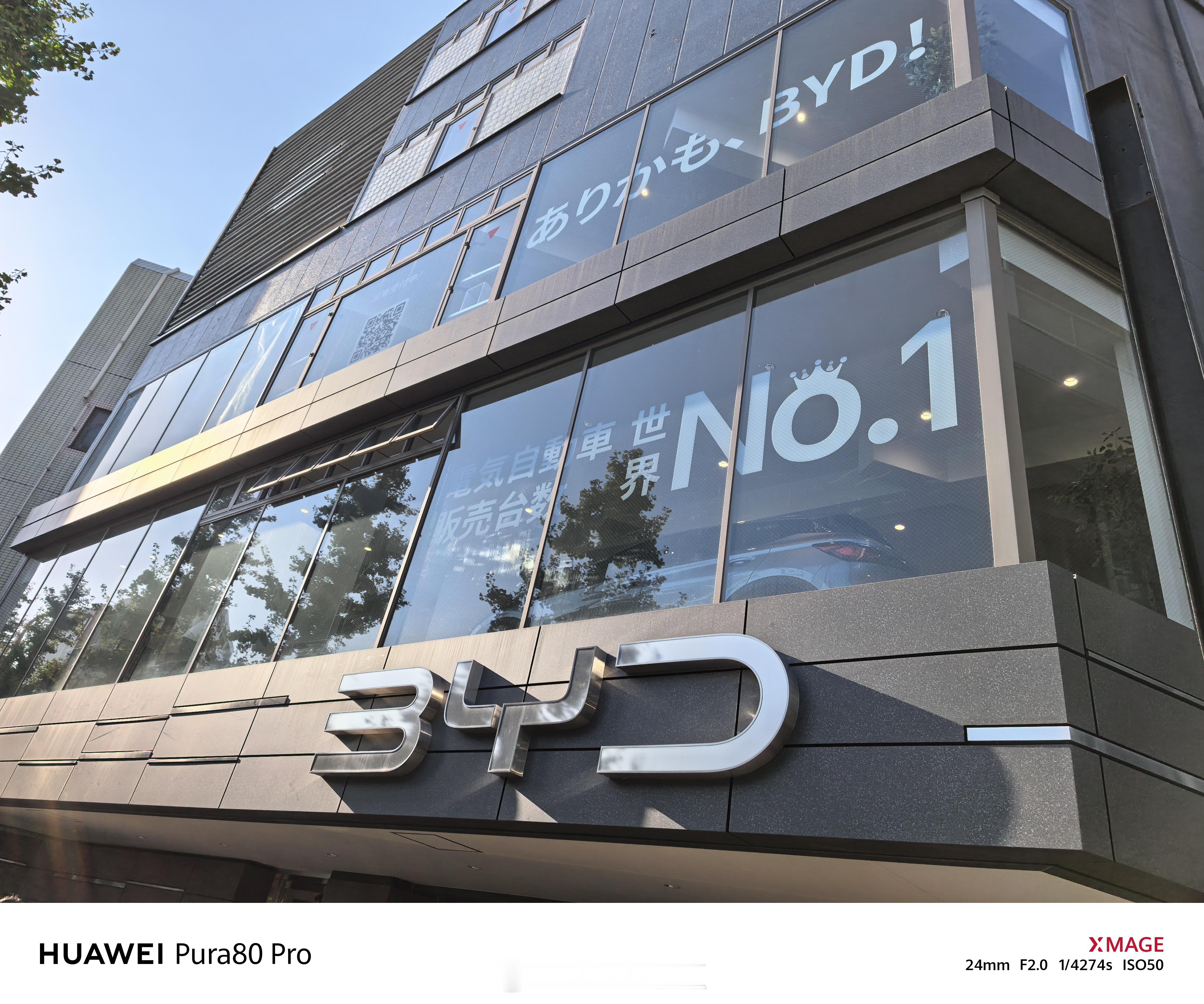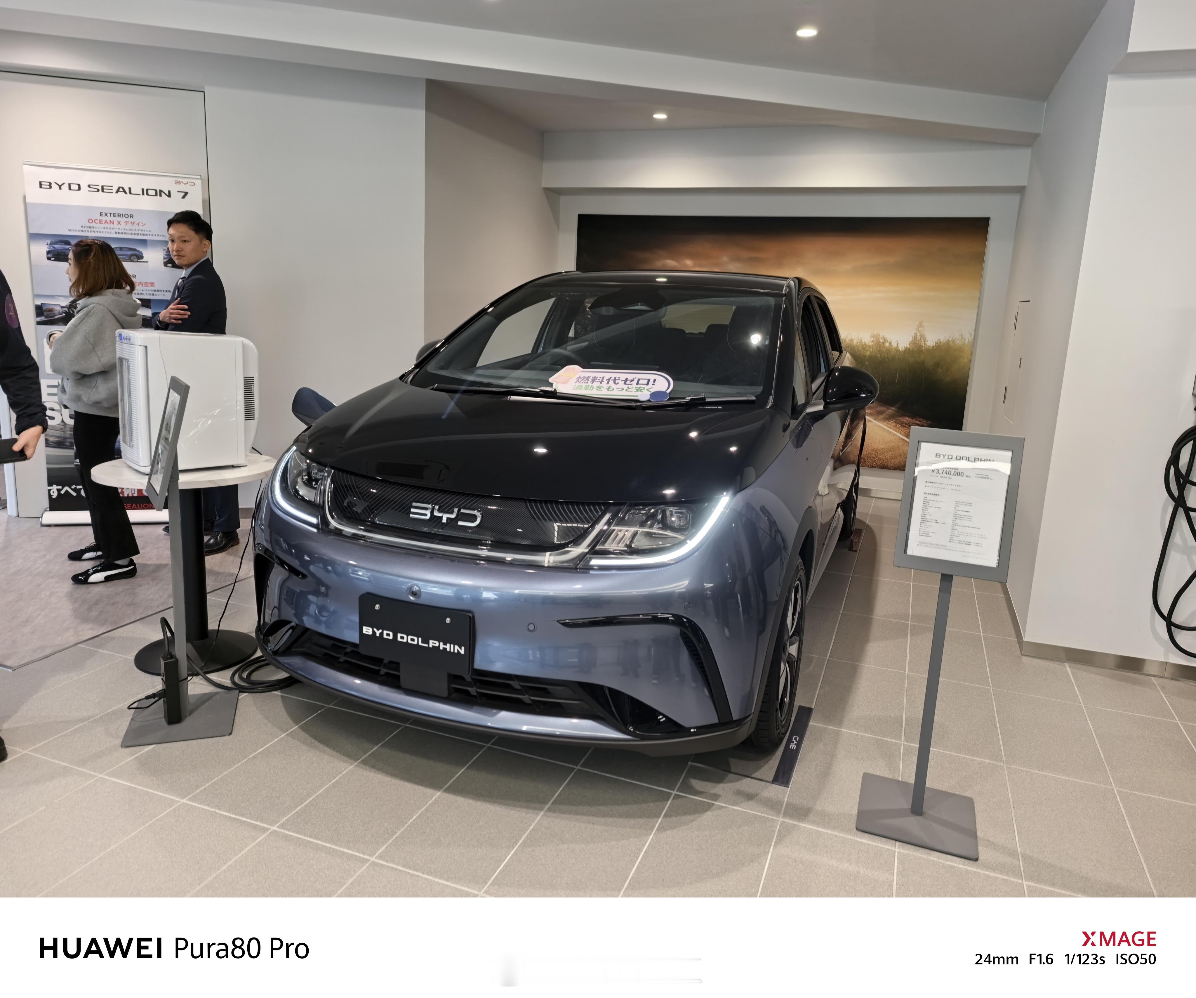 比亚迪的东京门店,相当袖珍的一家店。因为这里是有钱人区域,租金估计也不低。玻璃上贴着世界电动车销量第一,也是最有说服力的角度。