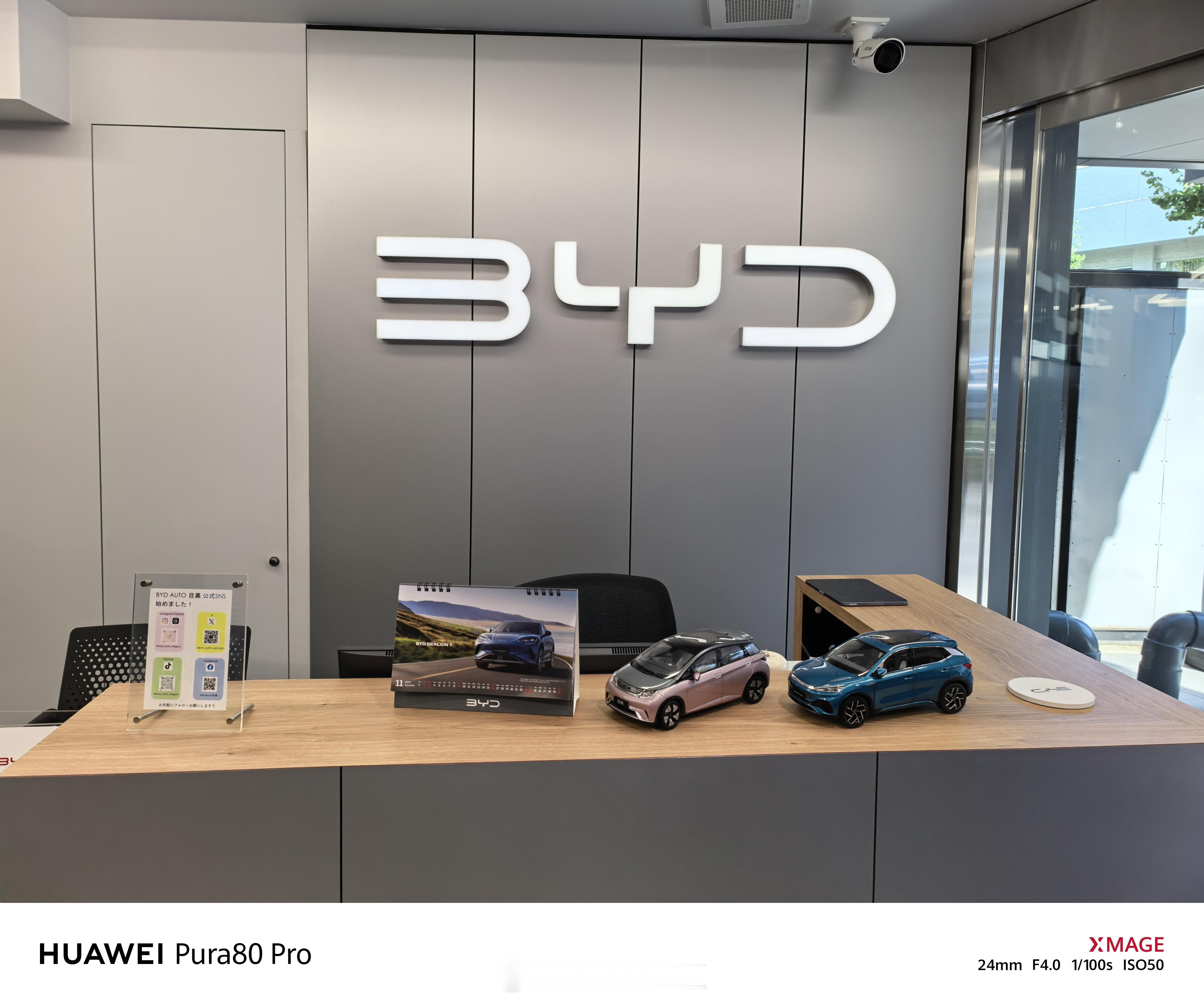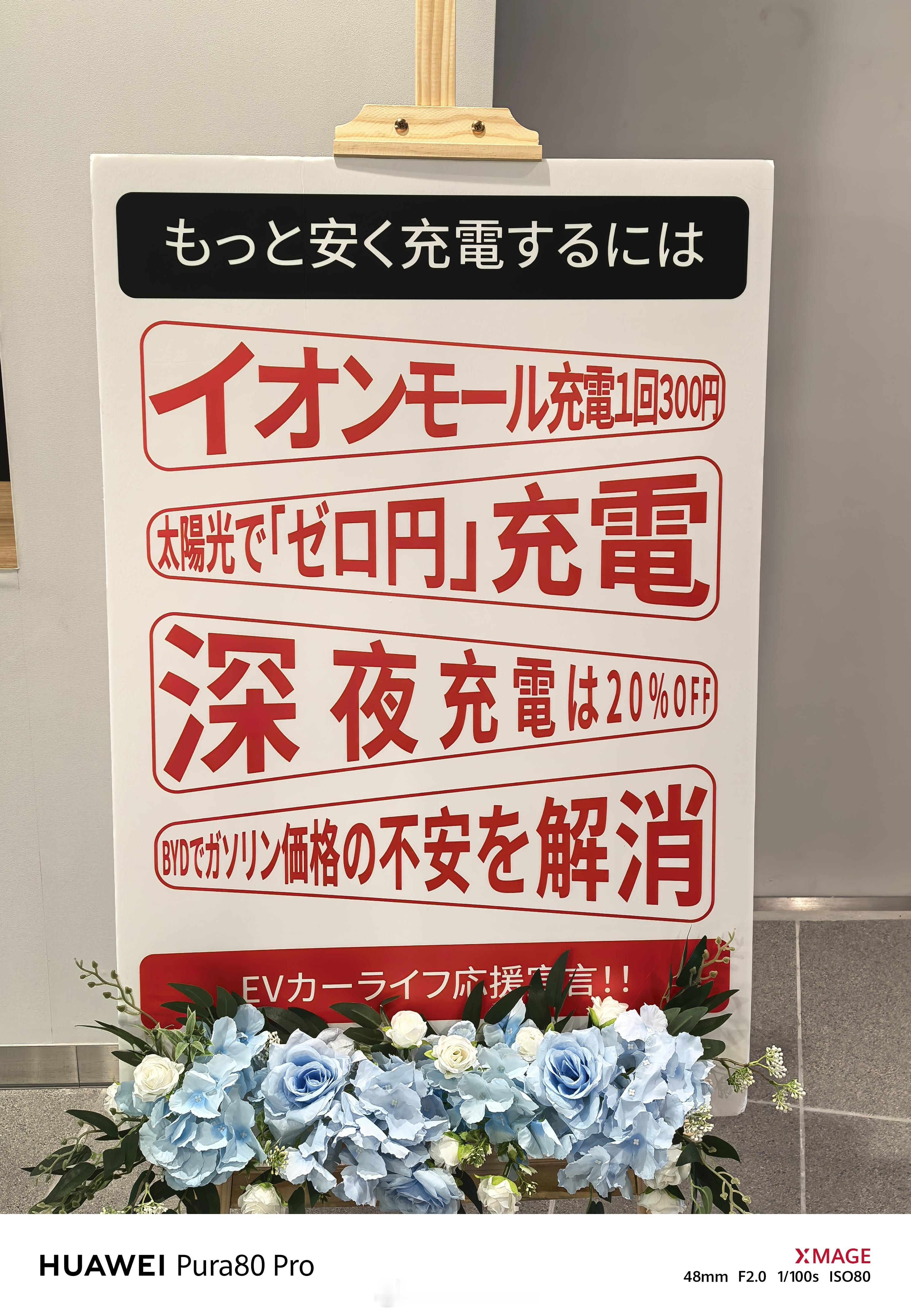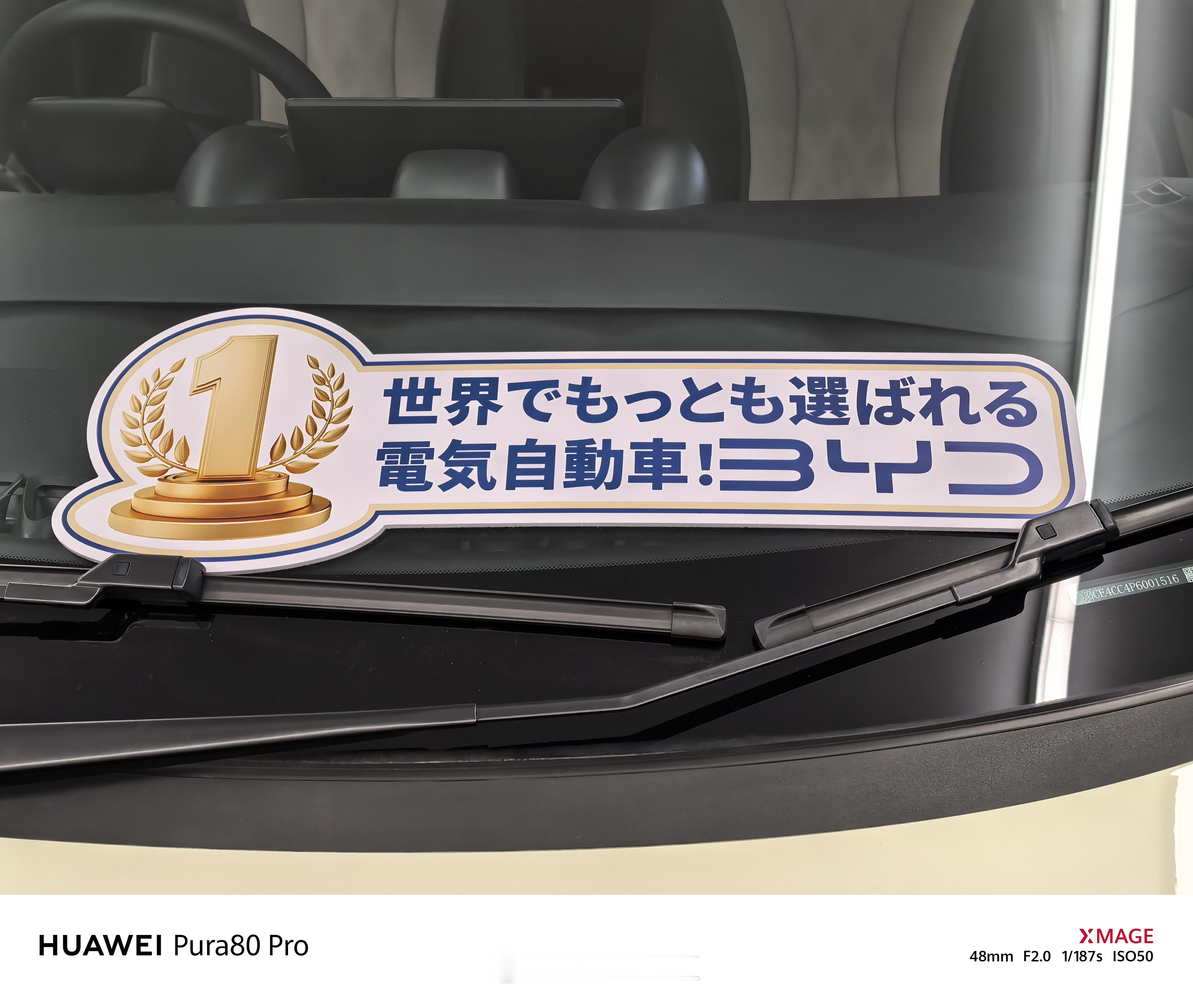 比亚迪的东京门店,相当袖珍的一家店。因为这里是有钱人区域,租金估计也不低。玻璃上贴着世界电动车销量第一,也是最有说服力的角度。