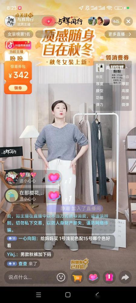 同一时间左边是东方甄选直播间,人数5k,在卖有机纯牛奶,主播戴着手套和头套,展现了无菌环境,但是缺点也有两个。 一个是直播环境实在艰苦,大冷天的,主播一说话哈气就成白雾,看着都替他们冻得慌;另一个是画面信息太杂,屏幕里堆着产品、字幕、互动消息,眼睛都不知道往哪儿落。再看右边与辉同行直播间,6万人挤着看卖衣服,主播盼盼穿件薄针织衫,状态松弛又得体,光看那暖融融的氛围,就知道直播间温度调得刚好。 咱普通观众看直播,图啥?不就图个“得劲”嘛。产品好是基础,但主播冻得直搓手、画面乱成一团,谁愿意多待?与辉同行这边,从主播状态到场景布置都透着“舒服”——衣服是穿的,直播间暖了,观众看着自然觉得“这衣服穿身上肯定不遭罪”;主播不绷着,互动也更接地气,谁能不跟着多停留? 直播这行,细节真能定输赢。东方甄选强调无菌是专业,但专业之外也得让观众“看得舒服”;与辉同行赢的不是流量,是把“人文关怀”融进了每个小细节里——让主播自在,观众才会买账啊。