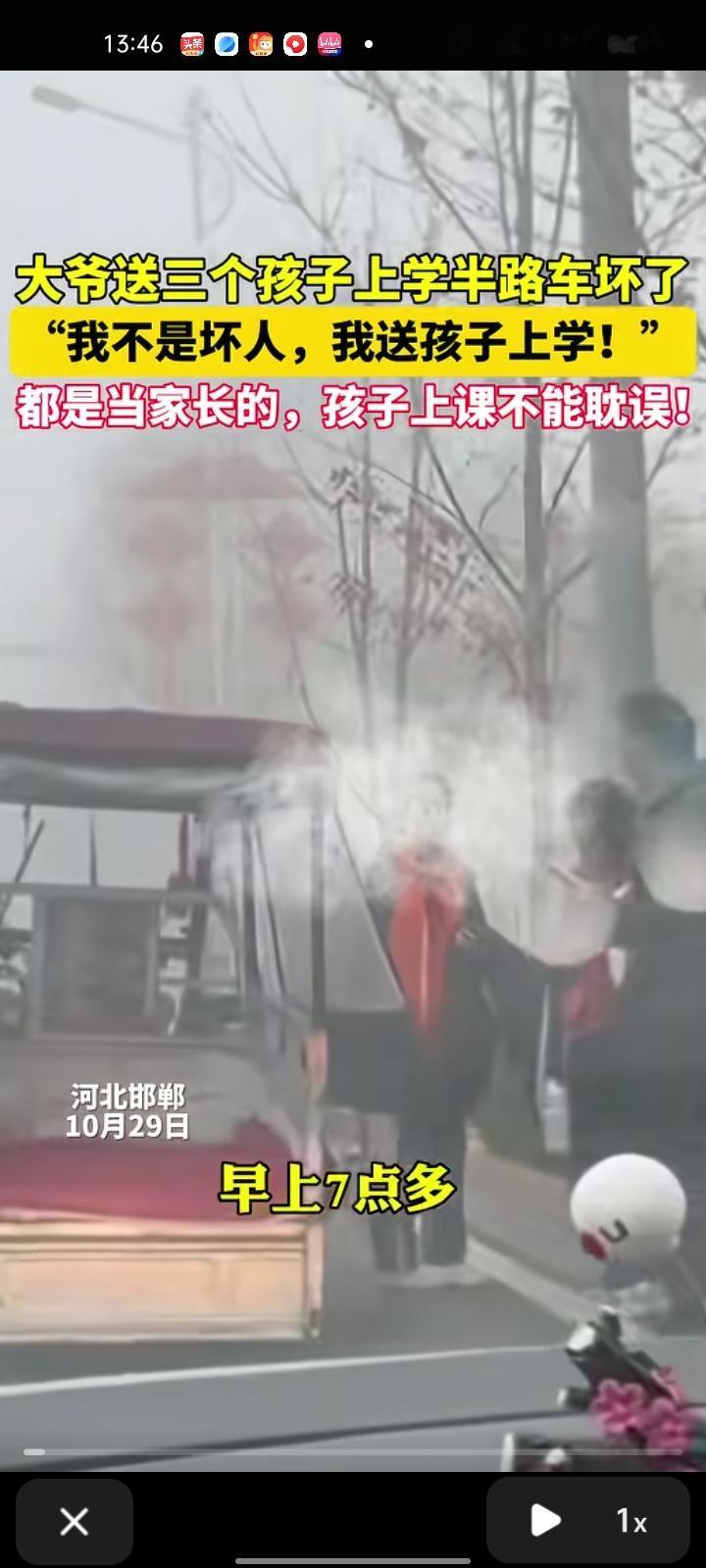 10月29日,邯郸市广平县。女子送孩子上学时,看见马路边一个大爷和三个学生,三轮车可能是坏了。经大爷同意后,女子送三个学生去往不同的学校。 当事人苏女士表示,每个人遇到的时候都会去伸出援手,都是做家长的,孩子上课不能耽误