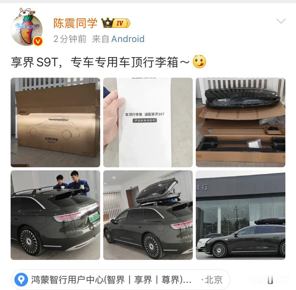 陈震给他的尚界,专门配了一个车顶行李箱! 可能这个选择,也是很多买了这个车的小伙伴共同的疑问,是按了这个行李箱的时候需不需要备案? 毕竟这样固定好之后,这个车身的高度就变了,无论是进地库还是停车,都得注意和之前的高度不一样了。 他在社交网络上,并没有说安装这个要不要备案,而且安装也是请的鸿蒙智行的工作人员弄的,不过看上去上面这个箱子也不是很大,只能够装一些基本的东西,比如折叠自行车啥的。 有人觉得不安装这个东西看起来协调一些,毕竟把这个东西装好了,真的要跑到户外去旅行的,并且也需要带这些东西的,可能在这个车的目标客户当中占不到三成。