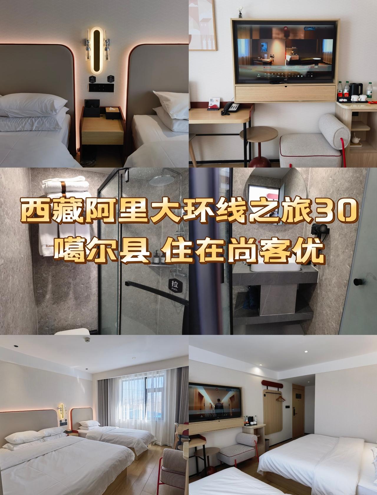 🎏 冬游西藏十一天自驾阿里大环线,从拉萨开始,沿着北边境线一路向西,天亮得越来越晚,太阳也落山得越来越晚。 🚘 我们此行的第六天,正月初三,落脚阿里噶尔县,海拔4265米,全是海拔比较温柔的地方。 🍀 噶尔县尚优品酒店,看着挺新的,入住供氧家庭房,233元,1.8米+1米床各一张,床品卫生舒适,房间不算大,有地暖+加湿+氧气,电视信号好,热水一般。因为家庭房在最边上,所以暖气差一点。酒店服务一般,无早餐,2~4层客房,一部电梯,有停车场,免费停车。