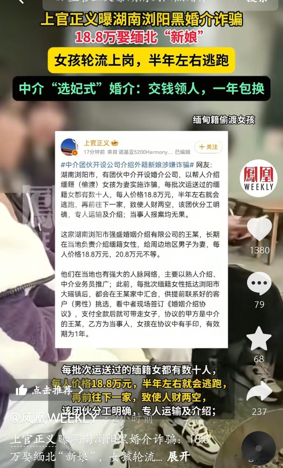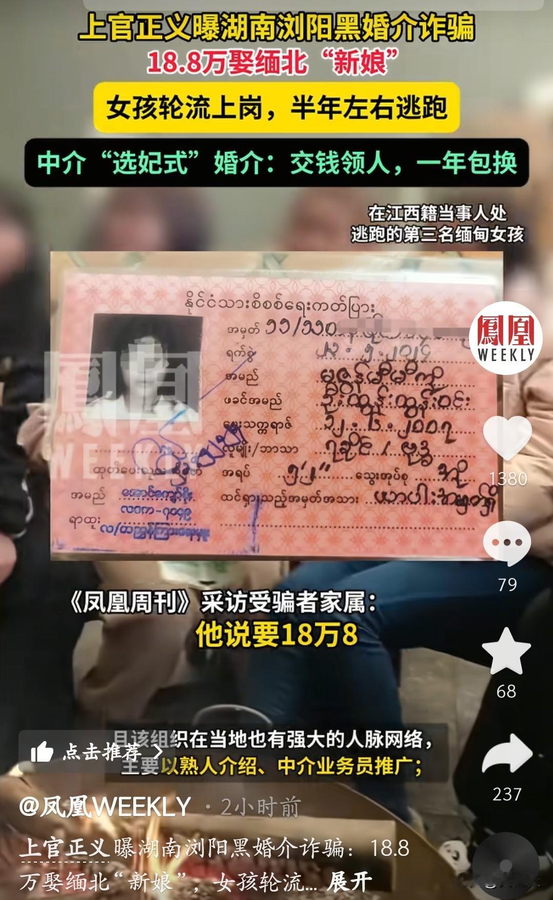 上官正义最新爆料,湖南浏阳惊现黑婚介诈骗大瓜!花18.8万就能娶个缅北“新娘”,