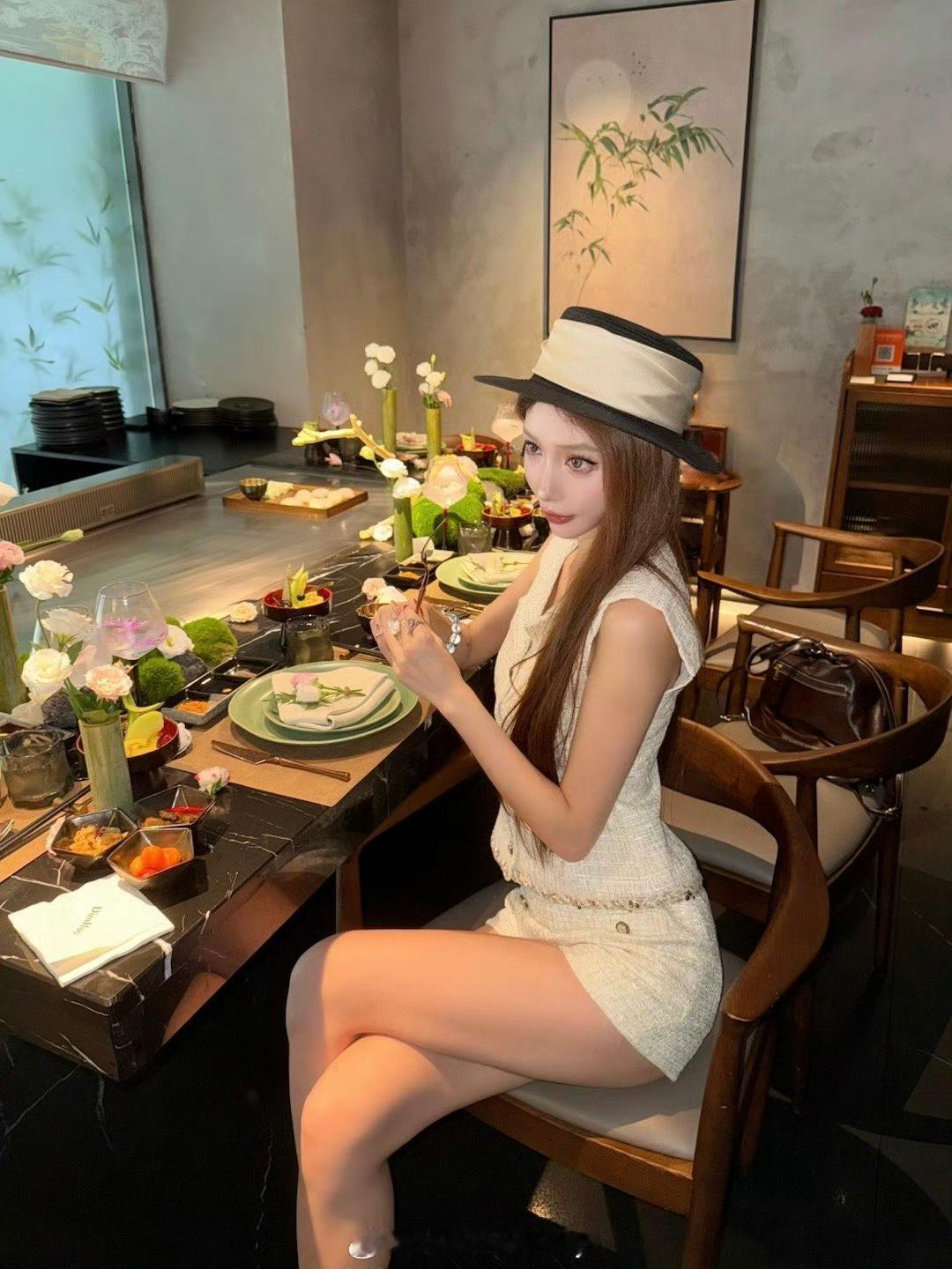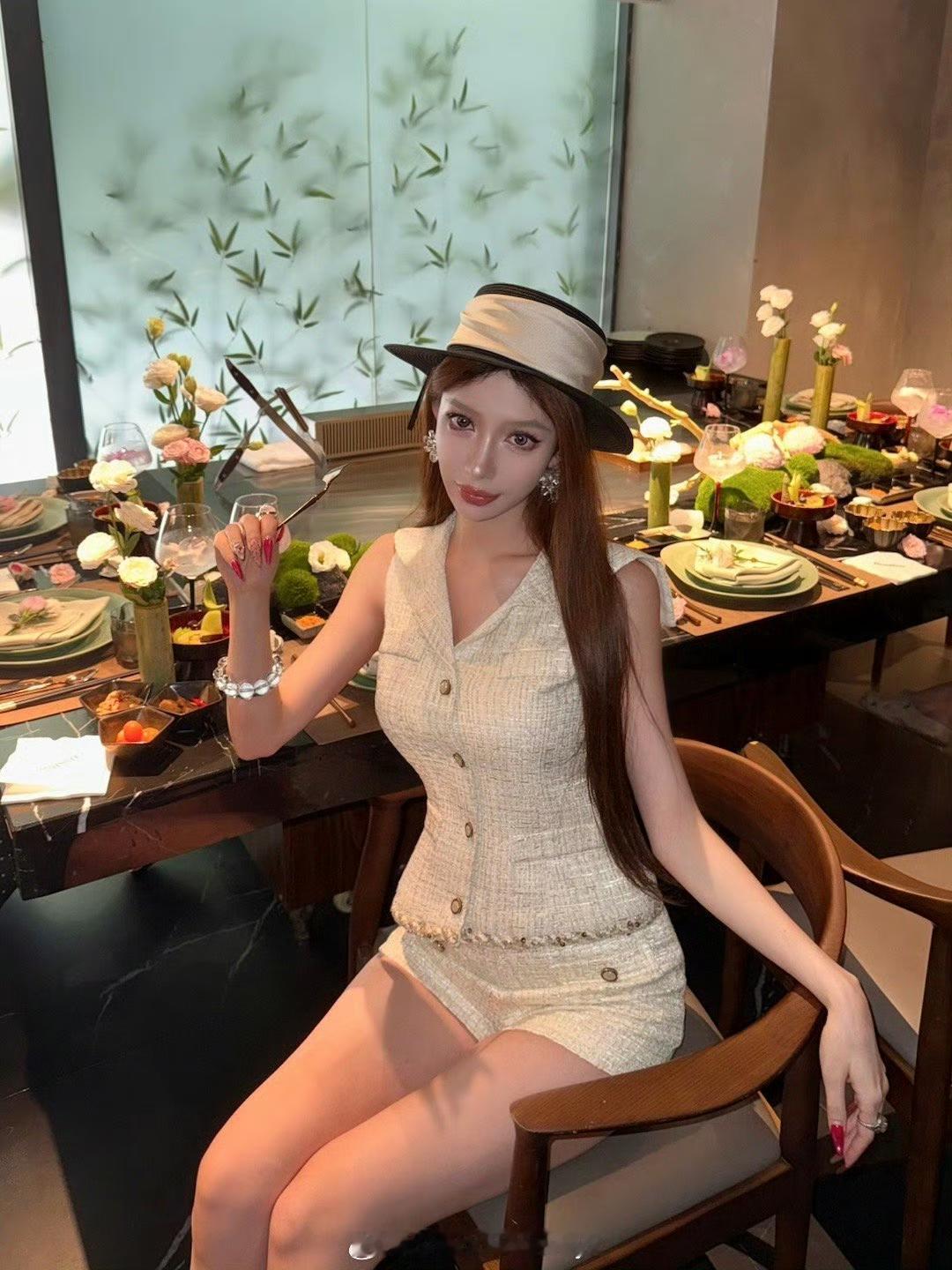 不可思议的晚餐,桌子上摆满了花,看不到菜,泡菜也没看见。有意思,喝酒时还拿话筒,