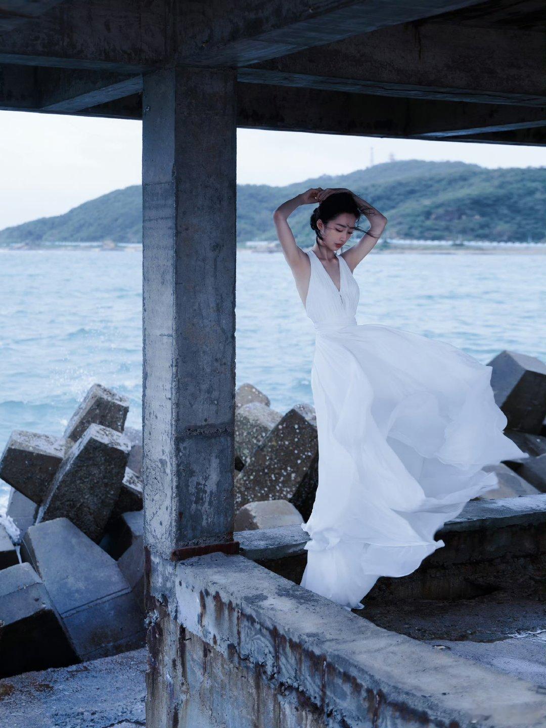 邓恩熙海边文艺少女邓恩熙白裙与海 邓恩熙好适合白裙了,完全是破碎感大美女[爱慕]
