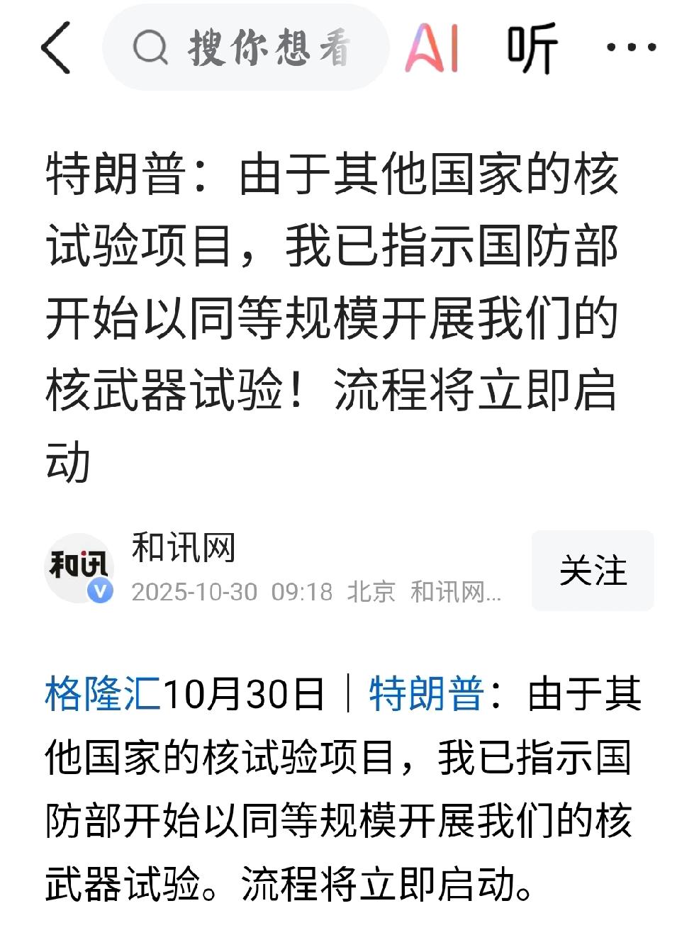 特朗普下令:立刻重启核试验 个人观点:这是对俄罗斯“海燕“的回应,也是对欧盟北约的交代。俄罗斯说的那句“海燕成功了后,周围都安静了”。 看来普京说得对,这是巨大成功。 特朗普的立即反应,说明西方国家被刺激到了。