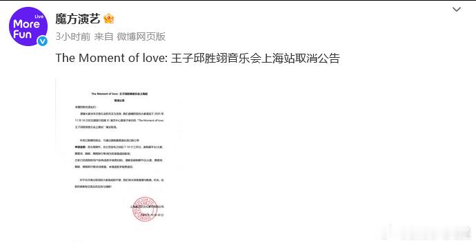 王子上海演出取消 范姜彥丰29日公开点名王子邱胜翊介入他与粿粿的婚姻,王子不仅原定11月1日出席一日店长活动证实已经取消,上海的音乐会稍早也宣布取消。