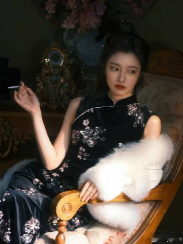 徐若晗民国造型妈咪级别看完徐若晗这组照直接圈粉!黑丝绒旗袍配披肩,靠沙发又冷又媚,眼尾轻佻、红棕唇超绝,老座钟成背景板,是民国大小姐!说妈咪级别真谦虚,这韵味建议内娱民国剧卷起来!