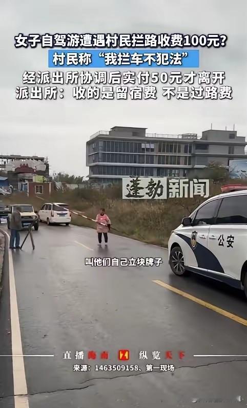 “严查到底!”10月30日,浙江湖州,一女子自驾游时,把车开进了一处停车场,早上离开时,却被村民设置栏杆拦下,要求她支付100元的费用!女子报警后经过协调,最终给了村民50元。警方:接到过多次报警,收的是留宿费。 这事儿听着就让人憋屈。女子开车进去的时候一切正常,压根没看见收费杆或者明显的收费提示,等玩够了想离开,村民搬出个栏杆往路上一横,张口就是一百块。对方理直气壮得很,拿着伞挡住脸不让拍,嘴里反复强调“所有人都付钱就你们不付钱?这是我们的私人土地”。私人土地就能这么搞吗?报警之后,警察来了也说是私人地块,提过好多次让村民立个牌子写明收费,最后各退一步,女子付了五十块才脱身。听起来好像解决了,可女子心里这口气根本咽不下去,转头就去了安吉信访局讨说法。 这种“先停车,后收费”的套路根本不是新鲜事。村民嘴上说是收“留宿费”或者“清洁费”,可关键问题在于,收费信息不透明,车主进去的时候完全不知情,等于是把车停好了,东西搬完了,被人捏住了软肋再坐地起价。这跟强买强卖有什么区别?私人财产权确实应该尊重,但行使权利不能这么任性。哪怕真是自家地,要收费也得提前、清楚地告诉别人,让车主有选择不停的权利。这种“拦路收费”的做法,很容易让人联想到过去一些地方村民私自设卡收费被处理的情况。 警方处理这类事也挺为难。他们得维护稳定,很多时候只能现场调解,劝说双方各退一步。但反复接到同一地点的报警,说明问题根本没解决。光靠调解,可能反而让这种不规范收费行为显得“被默许”了。长远看,需要更清晰的规则来界定这类私人地块停车的收费是否合法、如何规范,比如是否需经审批、明码标价。不然今天你收一百,明天他可能就敢收两百。 类似停车乱收费现象不少见。有新能源车停了该免费的时间段却被系统误扣费的,有以为免费停车八个月后收到天价账单的,甚至还有停一次车被不同人员索要不同价格的。这些问题核心都指向信息透明和监管到位。对比正规的“智慧停车”管理,这次事件中村民的做法显然不规范。个人在公共通行道路上擅自设卡收费,其合法性通常存在问题。 对车主来说,遇到这种来路不明的“收费”,第一时间报警是对的。同时也要留个心眼,停车前多观察周围有没有明确的收费标识,用手机拍下现场情况留作证据。如果觉得收费不合理,除了现场沟通和报警,事后还可以像这位女子一样,向当地市场监管部门或信访部门投诉反映。每个人较真一点,才能推动环境改善。 各位读者你们怎么看?欢迎在评论区讨论。