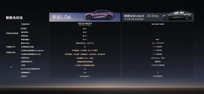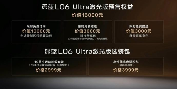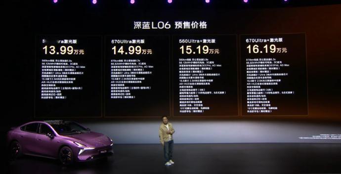 深蓝L06只要13.99-16.19万,性价比太高了 基础参数:4830*1905*1480mm,轴距2900mm(B+级别车) 驱动形式:后驱 电机功率:200kW(最大) 零百加速:5.9s-6.2s 充电速度:3C 电池:金钟罩电池(宁德时代-磷酸铁锂电池) 电池容量:56.12-68.82kWh 续航:560-670km 悬架:磁流变悬架 车机芯片:天玑座舱S1 Ultra 3nm 智驾硬件:1激光雷达/11激光摄像头/3毫米波雷达/12超声波雷达 智驾系统:DEEPAL AD MAX 颜色:外:黑/白/灰/银/紫,内:紫/灰/白,车衣:绿/粉/红 屏幕:15.6英寸向日葵旋转屏(2.5K)+AR-HUD 座椅:前运动桶感包裹座椅通风加热按摩、副驾零重力座椅(通风加热按摩)、90%内饰软包 轮毂:19寸轮毂 备箱:前100L/后464L 其他功能:花瓣灯、自动大灯、哨兵模式、热泵空调、6kW外放电、半隐藏把手、无边框后视镜、18扬声器、256色呼吸灯、无麦K歌、电动尾翼、50W无线充+1、360视野、透明底盘 13.99万 560Ultra激光版 560km续航+AR-HUD+前排通风加热+科技包+热泵空调+8扬声器+18寸轮毂 14.99万 670Ultra激光版 670km续航 15.19万 560Ultra+激光版 560km续航+副驾零重力座椅+科技包+19寸轮毂+可动尾翼+18扬声器+磁流变悬架 16.19万 670Ultra+激光版 670km续航 送: 全系智能辅助包(电后备箱+氛围灯) +版本赠送高新能包(磁流变悬架) 选装: +版本送19寸轮毂 高性能底盘进阶包 预售礼: 999抵扣3999(-3000) OSMO pocket 3(免费送) 5000元置换补贴 教授觉得这车的竞争力很强,而且全系给的是磷酸铁锂电池,还有磁流变悬架、激光雷达智驾系统,给人一种我打我自己的感觉,比启源A06性价比还高啊,直接面对汉DM-i了,另外比较好的配置,包括零重力座椅和各种配置,都是两个高配给的(15.16和16.19万)。【来自懂车帝车友圈】