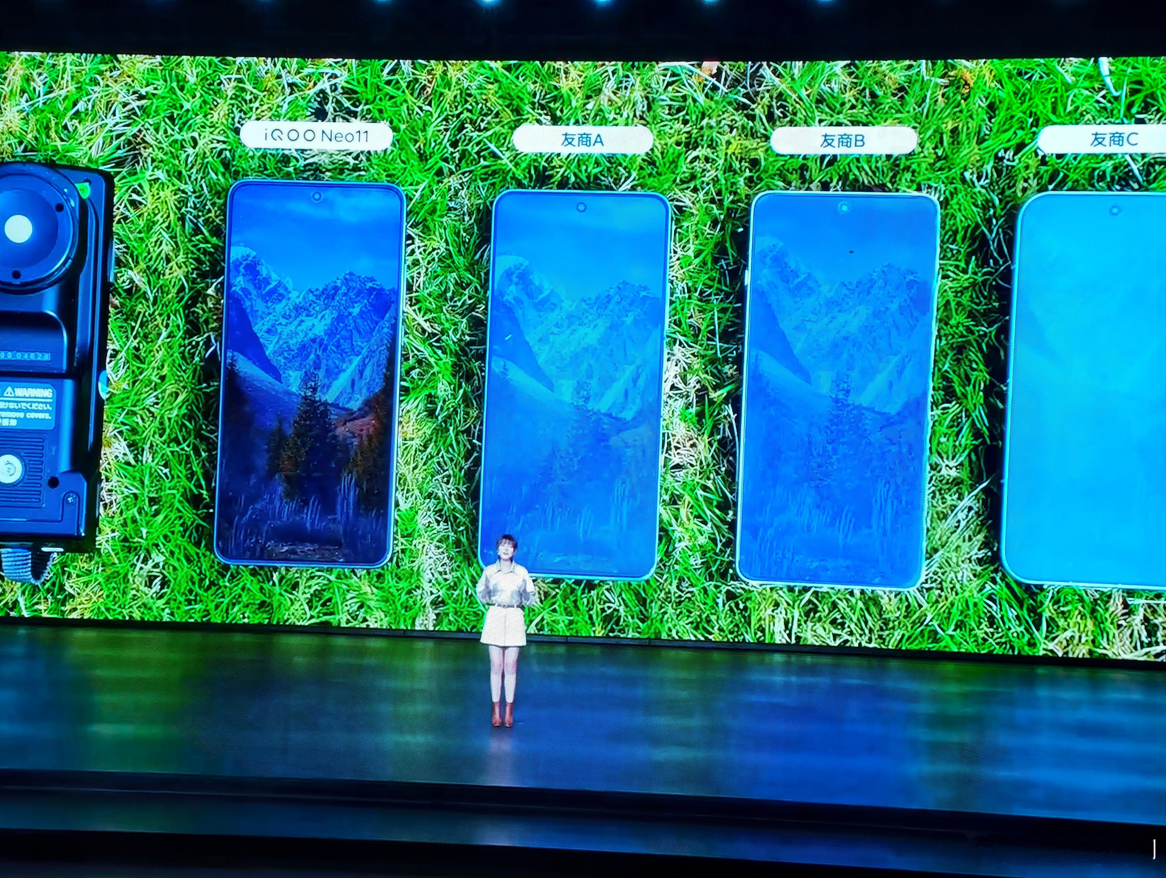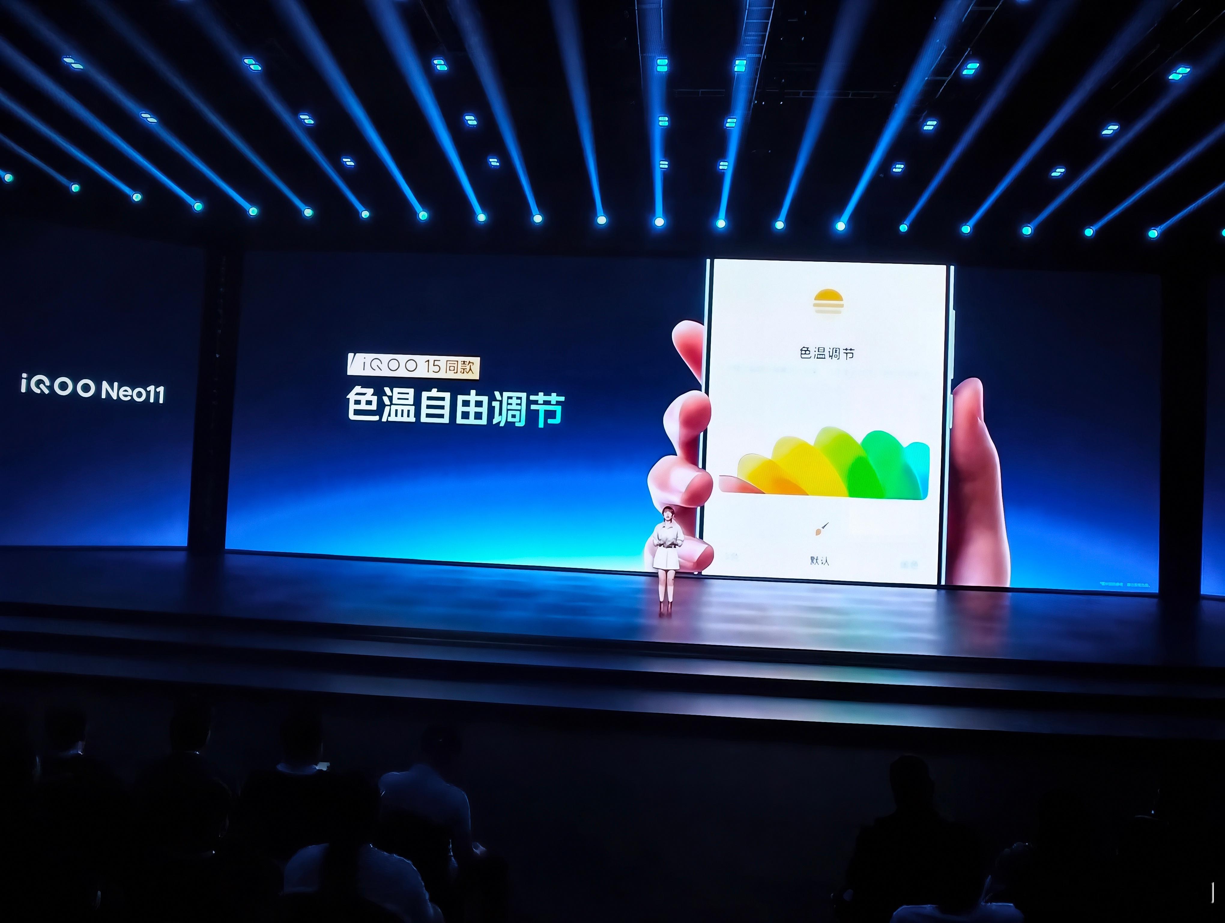 iQOO Neo11搭载了领先的国产2K 144Hz珠峰屏:①硬件:2K旗舰屏;1-144Hz智能动态刷新率,更流畅、更省电、更好的显示均一性;采用与BOE深度联合研发的全新Q10+发光器件!②调校:30°视角下色偏水平0.7 JNCD,45°视角下色偏水平1.7 JNCD,不同角度使用颜色仍精准;③更有iQOO15旗舰同款全链路原彩映射,iQOO15旗舰同款全屏熄屏显示。