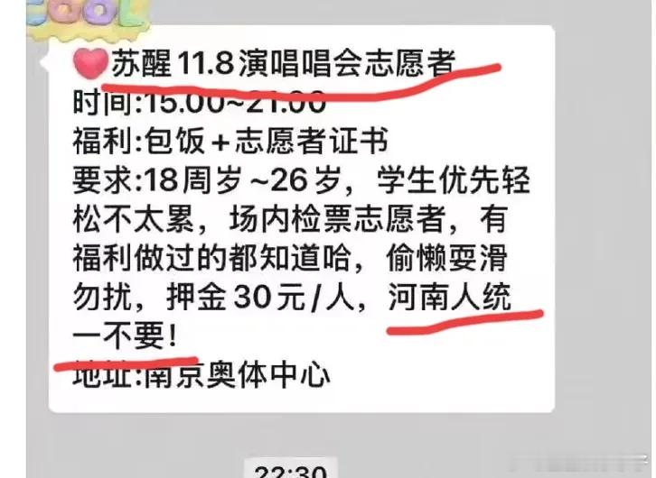 如果像这个博主说的是真的,陆虎的心情应该不会太好,不是和嘘嘘感情不好,也不是写歌出现瓶颈期,而是他的好兄弟苏醒被博主曝光演唱会志愿者特意注明不要河南人。