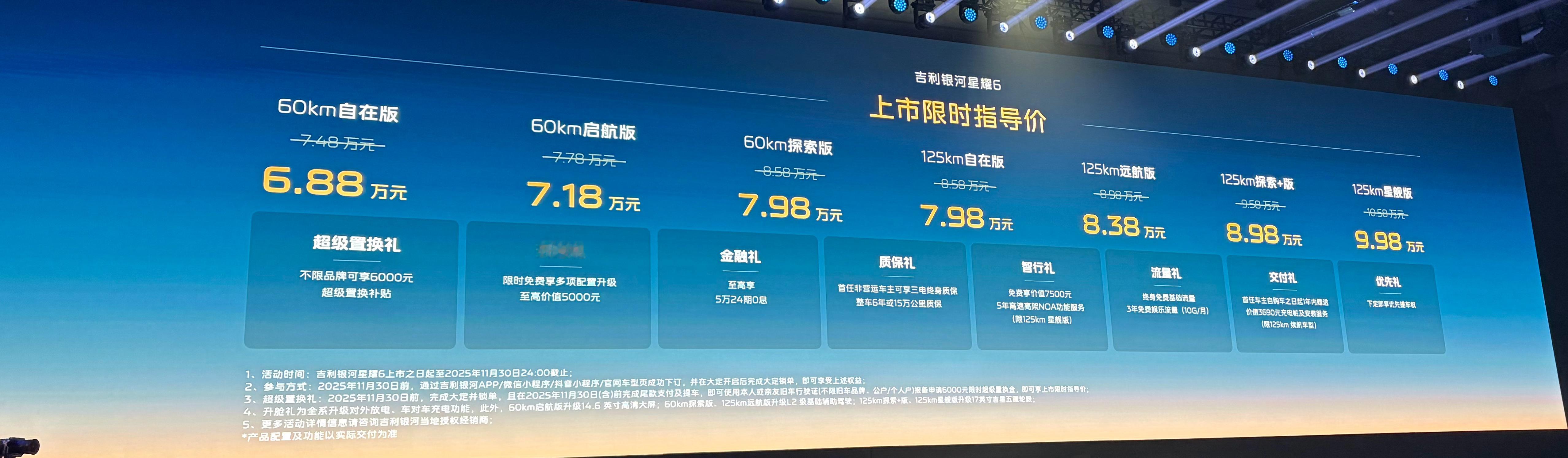 还有多重上市福利!兄弟们,6打头啦!很实在,可以冲了!吉利银河星耀6 全球上市!新一代国民电混家轿