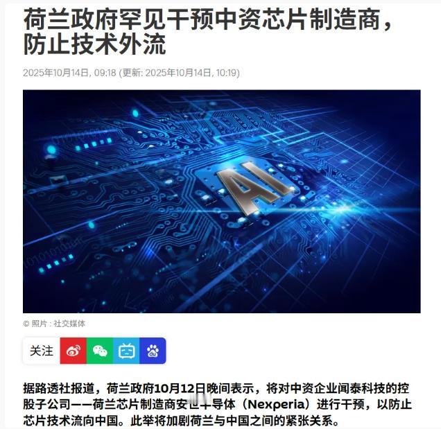 中方反击荷兰没收资产后,德国女部长恼羞成怒:北京需要被狠狠地打击一下!凯瑟琳娜·赖歇明确表示不会抗议荷兰对安世半导体的国有化,却称中方“需要被狠狠地打击一下”。显然,包括德国和荷兰在内的西方列强,还是沉浸在西方列强高高在上的陈旧思维习惯里。   这话听着挺凶,其实全是漏洞,合着荷兰把中国企业的合法资产给抢了,中国反击两下,反倒成中国“没理”了?这西方老列强的老一套,真是越说越没新鲜的了。   要说这事儿的根儿,得从 6 年前说起。2019 年,中国的闻泰科技是真掏了全款,把荷兰的安世半导体给买下来了。那时候两边都挺高兴,妥妥的双赢:荷兰总部还留着品牌,搞点小研发撑场面,真正能造芯片、能赚钱的核心产能,早挪到中国东莞了。   这几年安世过得也不错,就去年一年,给闻泰赚了 147 亿,比被收购前的经营情况好太多了,怎么看都是笔成功的生意。   结果到了2025年10月,荷兰突然变卦了。先是他们经济事务部发了个部长令,把安世在全球30个地方的资产、知识产权全给“冻”了,一年之内啥都不能动;接着当地法院又听了几个外国高管的请求,把闻泰董事长张学政的董事职位给停了,还派了个有“说了算投票权”的独立董事盯着,把闻泰手里几乎所有的股权都交给第三方管着。   理由是啥?说白了就是句没人信的“危害荷兰和欧洲的经济安全”。这话说得简直是睁眼说瞎话,核心产能早就在东莞运转好几年了,荷兰手里就剩点研发和品牌,咋就突然威胁国家安全了?   闻泰当时就火了,发声明把话说得明明白白:这就是把商业事儿搞成政治事儿,是明摆着的歧视限制,已经开始用法律和外交途径维权了。中国半导体行业协会也跟着说话,说坚决反对这么滥用“国家安全”的名头,这是在破坏全球产业链的规矩。   换哪个国家,自家企业被这么欺负,都不能不管啊。中国的反击也是有法律依据的,按照今年3月刚实行的《反外国制裁法》的规定,海关、金融管理这些部门有权冻结对方在中国的财产,限制相关的交易,甚至能不让涉案的人进中国。   本来这是中国和荷兰之间的事儿,德国的经济与能源部长凯瑟琳娜・赖歇倒先急了。她不光说不反对荷兰把安世收归国有的做法,还跳出来喊 “得狠狠打击一下北京”。这话听着就怪,德国企业跟安世半导体生意不少,安世的汽车半导体零件常年给欧洲车企供货,荷兰这么一闹,按理说德国的产业链也会受影响,赖歇咋还帮着荷兰说话呢?   再想想这位女部长之前说的话,就更有意思了。上个月还喊着要联合德国企业搞无人机研发,说“欧洲的安全得靠德国工厂”。合着德国搞产业升级就是“正当防卫”,中国企业合法买公司、正常做生意,就成了“威胁安全”?这双标玩得也太溜了。   更讽刺的是,荷兰干这种事儿也不是头一回了,之前就跟着美国的指挥棒限制光刻机出口,现在又拿安世开刀,本质上都是为了拦着中国半导体产业发展。可他们忘了,安世的核心技术和产能早就在中国落地了,真把中国企业惹急了,要是停止供货,那损失可不是荷兰能扛得住的。   其实西方这套“强权逻辑”早就没人吃这一套了。当年闻泰买安世的时候,荷兰政府是点了头的,所有手续都合规合法;现在见中国半导体产业起来了,就拿“国家安全”当幌子抢资产,这跟强盗抢东西有啥区别?   更可笑的是,赖歇这些人还活在“西方高人一等”的旧梦里,以为喊两句“打击”就能吓住人。他们忘了,中国现在手里有《反外国制裁法》当武器,还有全球最大的半导体消费市场当底气,真要“打击”起来,恐怕先疼的是他们自己的产业链。   荷兰这么一折腾,不少欧洲企业都在犯嘀咕:今天能抢安世,明天会不会轮到其他中资控股的企业?要是商业合作说断就断,契约精神都不算数了,以后谁还敢跟欧洲做生意啊?中国半导体行业协会的声明说得好,这种挑着对象的歧视措施,只会引发连锁反应,最后破坏的是全球产业链的稳定。   说到底,赖歇的火发错地方了。真要是为欧洲产业好,该做的是让荷兰遵守商业规则,而不是跟着瞎起哄。中国从来不怕硬碰硬,但也一直守着规矩,你跟我讲商业,我就跟你谈合作;你跟我玩政治,我就用法律反击。那些还抱着“列强思维”不放的人,早晚得明白:现在的中国,可不是随便能拿捏的了。