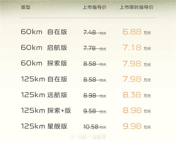 新车共推出7款车型,售价区间为7.48-10.58万元,上市限时指导价为6.88-9.98万元