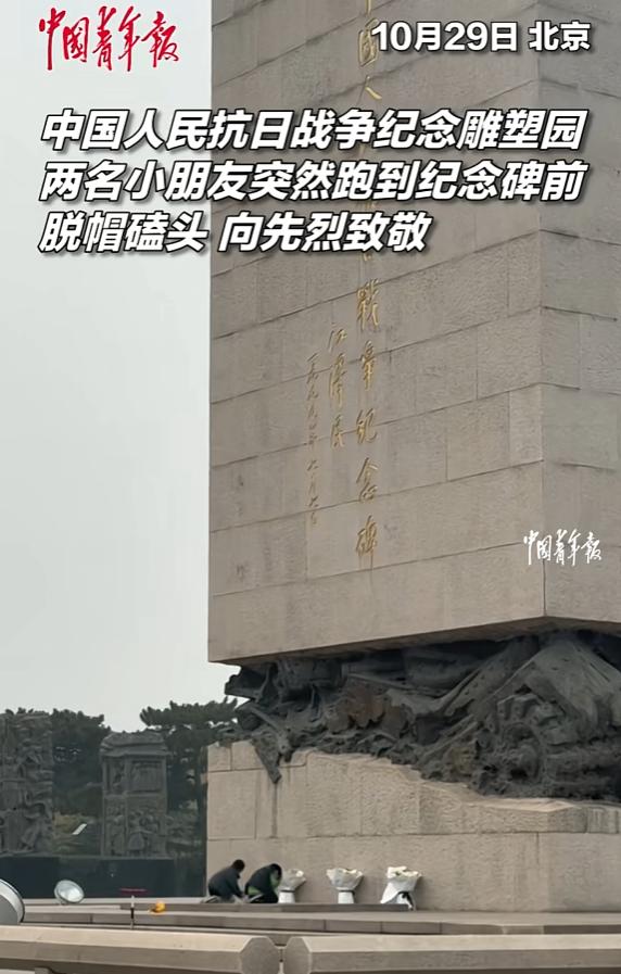 北京一位家长带着两个孩子去抗战雕塑园游玩,没想到两个孩子刚到就跑到了纪念碑下面,家长刚想出声阻拦,看到孩子们的举动被震惊的说不话来了。 只见两个孩子来到纪念碑下,郑重的脱下帽子,给纪念碑磕头,悼念先烈。 妈妈看到这一幕直接被震惊的说不出话来了,没想到两个孩子居然能做出有意义的举动。 这一刻,两个孩子的成绩怎样已经不重要了,教育是否成功不是只看成绩,更是看对孩子三观的塑造。 孩子妈妈也说,我们是卢沟桥人,骨子里刻的都是对英雄对先烈的憧憬。 其实不只是卢沟桥人,对先烈的憧憬早就在爱国教育中深入骨髓,是每个中国人牢牢铭记的精神。 这两个孩子能在这个年纪三观就正,品行就端,未来肯定不会差。 素材来源:中国青年报