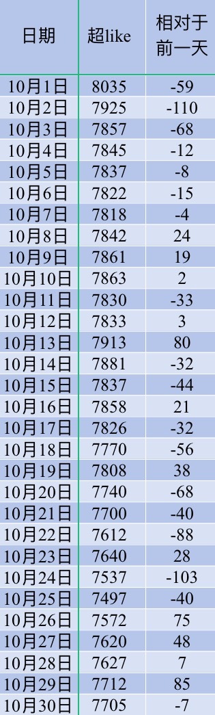 昨天的超喜欢其实只差七个就可以继续上升了的,不过今天的超喜欢底数还是上升的,昨天的发帖人数稍微的下降了