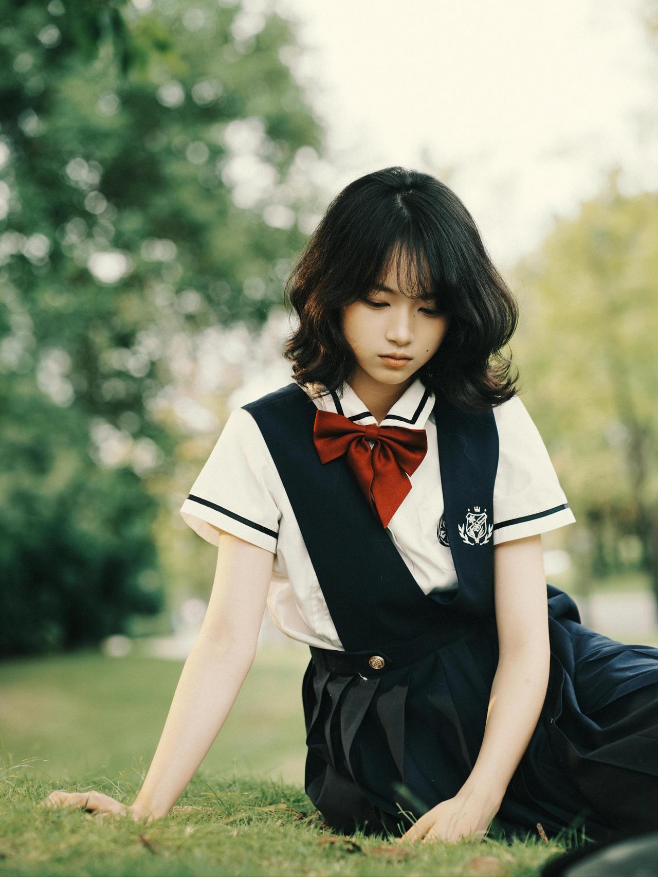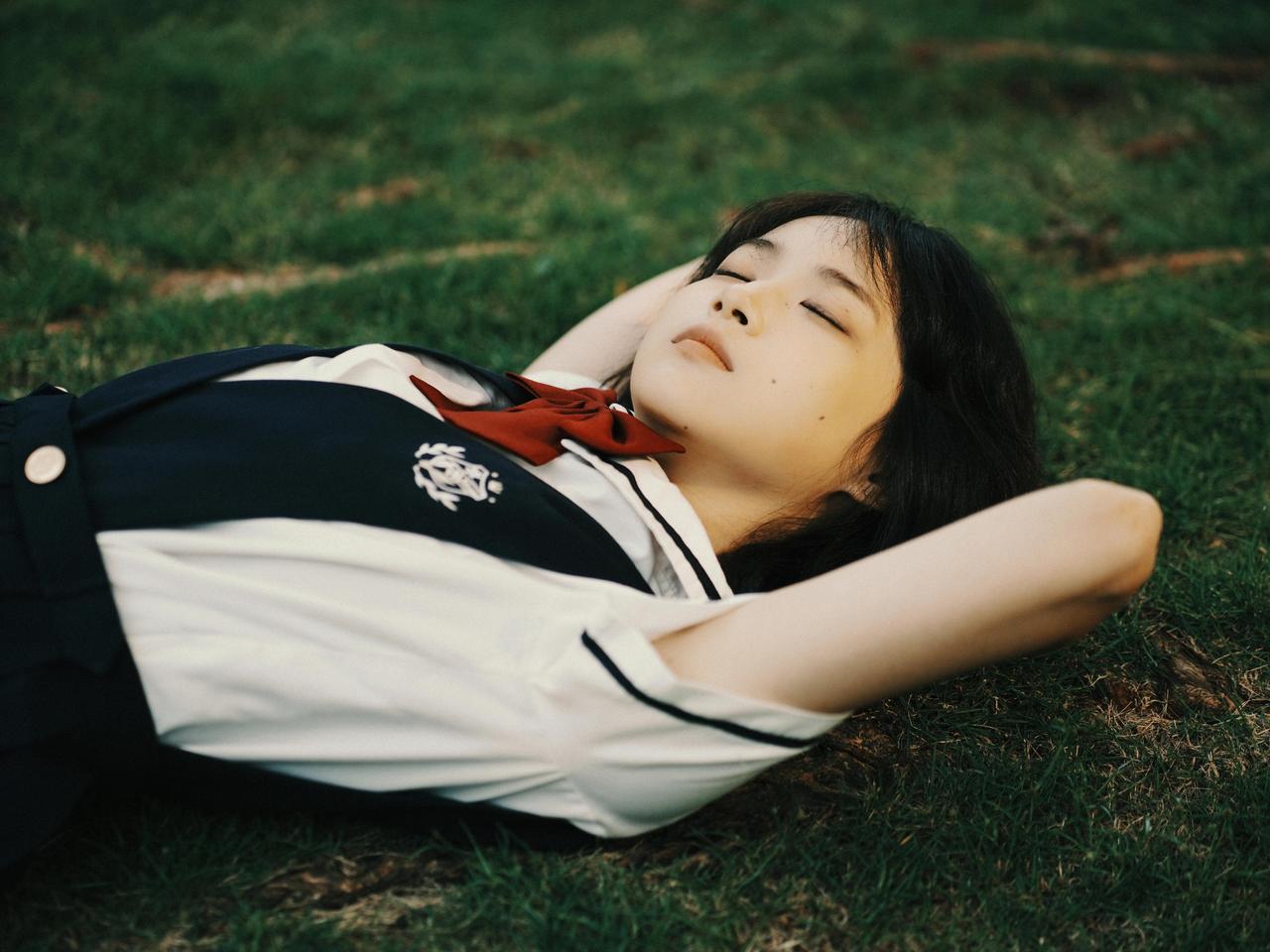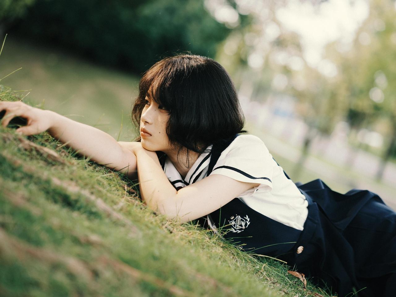 照片的胶片质感为少女遐思主题注入了时光的厚重感,暖黄色调、轻微的颗粒感,少女趴在草地上,制服的黑白条纹与草地的鲜绿形成复古又鲜活的对比,这种色彩的碰撞既怀旧又充满生命力。 从光影处理看,胶片特有的光影层次让少女的发丝、肌肤呈现出细腻的颗粒感,阳光的暖调洒在她的侧颜与手臂上,每一处光斑都是时光的印记。构图上的“近景聚焦”策略,将观者的注意力完全锁定在少女的神情与姿态上——她眼神放空,似在与草叶私语,又似在与时光对话。这种“沉浸式”构图让遐思的情绪直接穿透画面,抵达观者的感知深处。 这张照片的独特性在于胶片媒介与主题的适配性。“遐思”本身就带有对过往或未来的时间性思考,胶片的复古质感恰好呼应了这种时间维度的情绪,它让青春的遐思不再是单薄的当下情绪,而是沉淀在时光里的、可被反复品读的记忆切片。