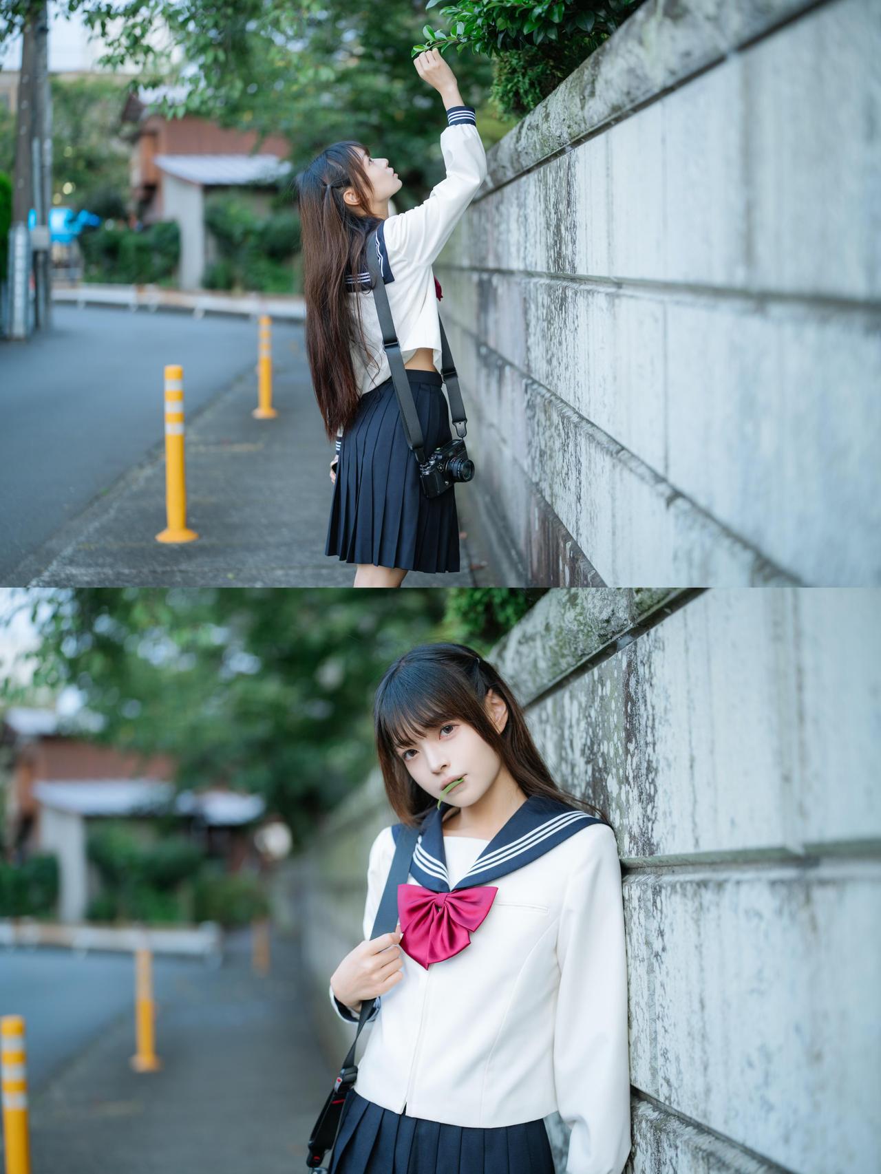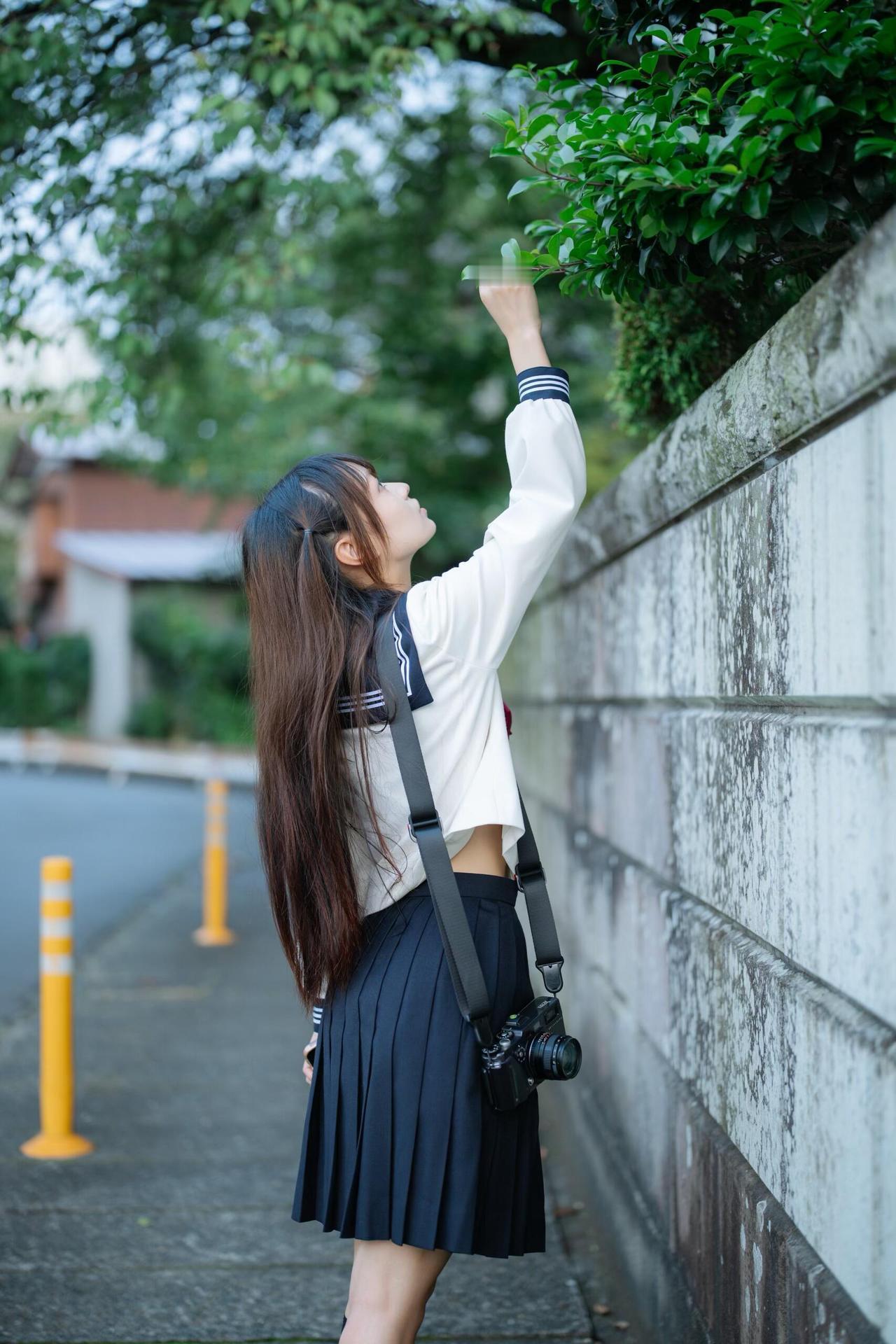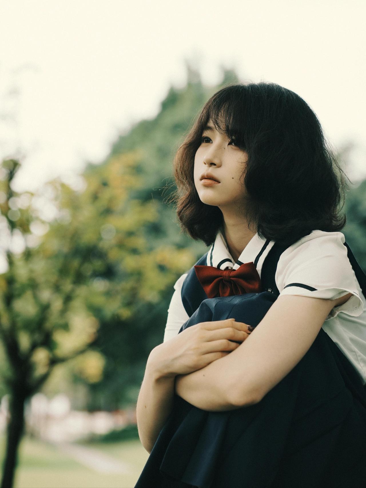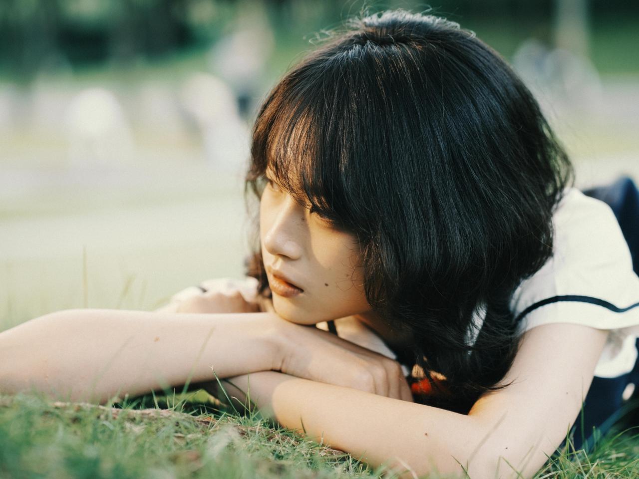 照片的胶片质感为少女遐思主题注入了时光的厚重感,暖黄色调、轻微的颗粒感,少女趴在草地上,制服的黑白条纹与草地的鲜绿形成复古又鲜活的对比,这种色彩的碰撞既怀旧又充满生命力。 从光影处理看,胶片特有的光影层次让少女的发丝、肌肤呈现出细腻的颗粒感,阳光的暖调洒在她的侧颜与手臂上,每一处光斑都是时光的印记。构图上的“近景聚焦”策略,将观者的注意力完全锁定在少女的神情与姿态上——她眼神放空,似在与草叶私语,又似在与时光对话。这种“沉浸式”构图让遐思的情绪直接穿透画面,抵达观者的感知深处。 这张照片的独特性在于胶片媒介与主题的适配性。“遐思”本身就带有对过往或未来的时间性思考,胶片的复古质感恰好呼应了这种时间维度的情绪,它让青春的遐思不再是单薄的当下情绪,而是沉淀在时光里的、可被反复品读的记忆切片。
