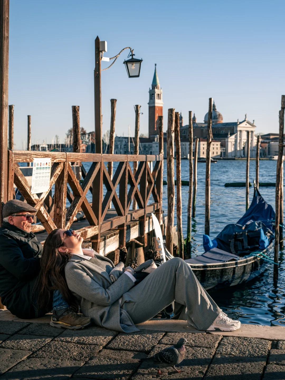 欧洲旅行一个多月 我想威尼斯必定是我首选推荐 只一眼 便爱上 在威尼斯 每一步都像穿越进一幅油画:清晨的阳光洒在蜿蜒的运河上,贡多拉轻轻划过,水波倒映着百年建筑的风韵;狭窄的小巷中,偶遇一家隐藏的咖啡馆,点一杯意式浓缩,感受历史的气息与现在的温柔交汇 傍晚时分 圣马可广场的钟声敲响 暮色将宫殿染上金黄 大家惬意随地而坐 享受冬日阳光的温暖 微风轻拂 眼中是灯火斑斓的水城 耳边是小提琴悠扬的旋律 威尼斯的浪漫 不是铺张的炫耀 而是一种流动的优雅 仿佛轻声细语地诉说着时光的诗篇