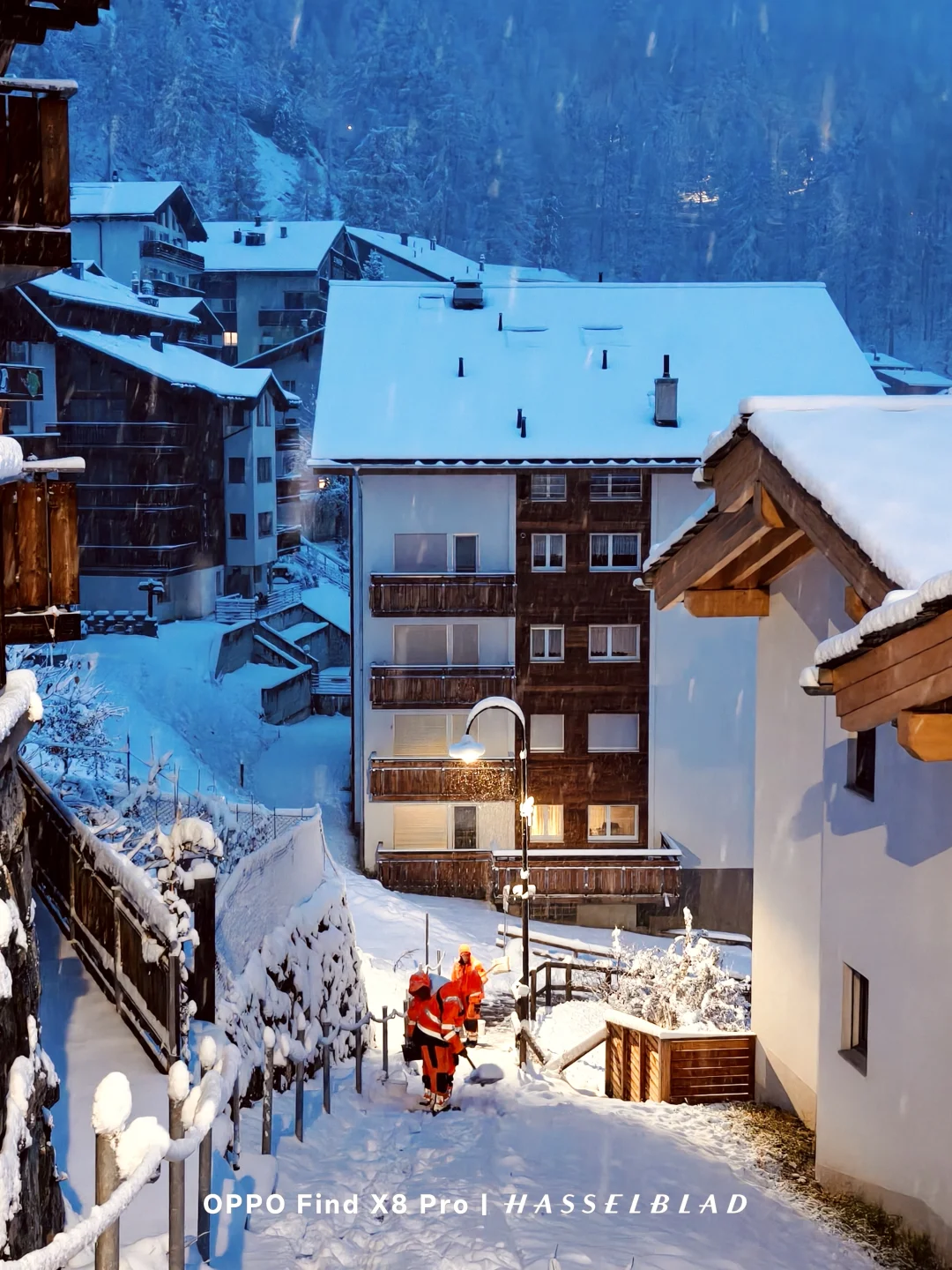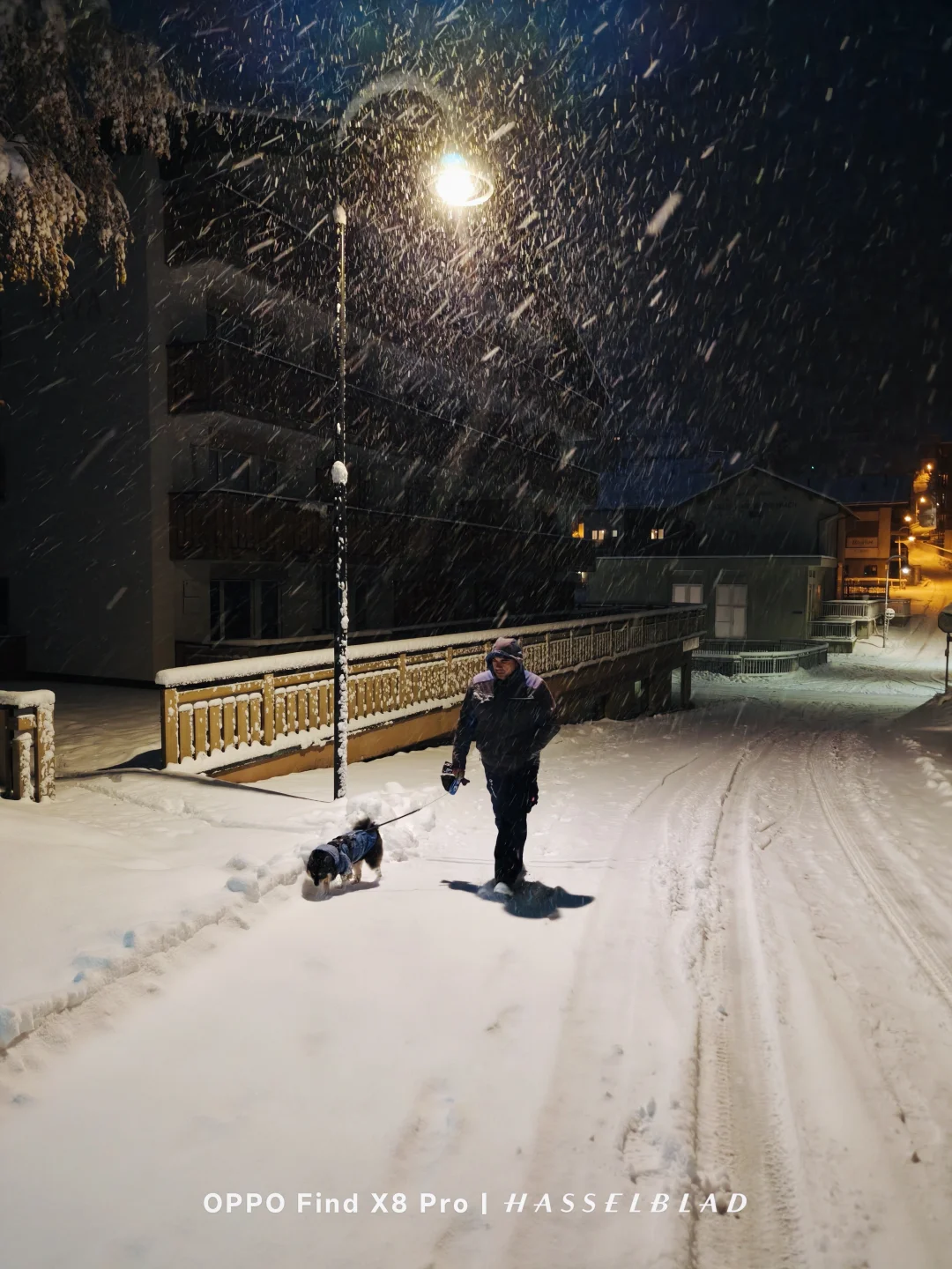 灯光会让雪花更加耀眼 而且OPPO自带的胶片风格加持下,直出更有电影感