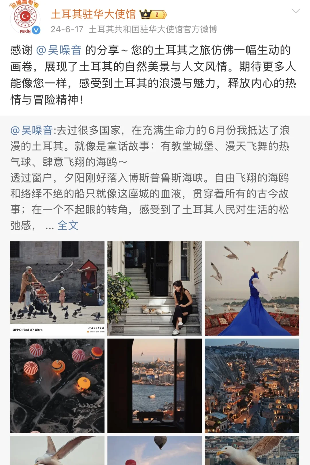 所拍的摄影作品被土耳其驻华大使馆转发
