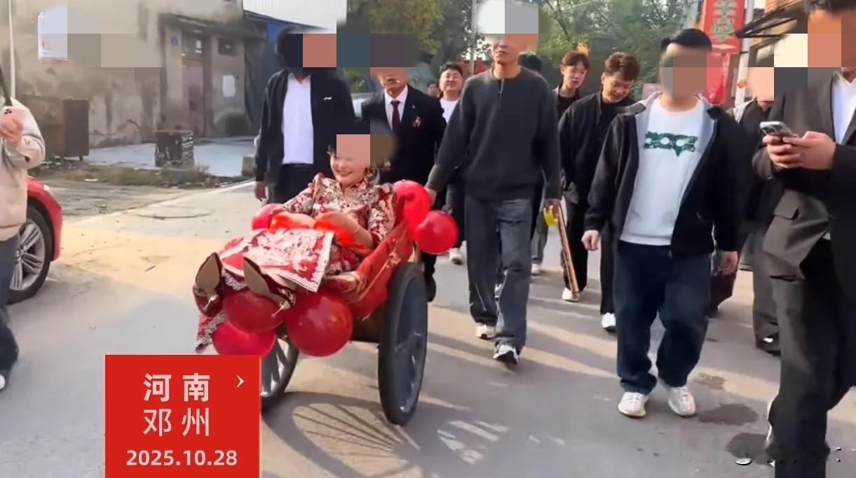 这个新娘子火了!”10月28日,河南邓州,一新郎将新娘接到家里后,发现时间还很早,距离结婚仪式还有很久,于是大家竟一起把新娘放在了翻斗车上,带着她出门一边唱歌一边给邻居发喜糖,网友:这才是大家最想要的“婚闹”! 不知道从什么时候开始,婚礼似乎都变得千篇一律了,包括场地和服装甚至是流程,都没有什么让人眼前一亮的景象,所以这对新人的想法才让人觉得非常难得! 咱就说这事儿为啥招人喜欢?人家发喜糖、唱喜歌,图的是热热闹闹分享喜悦,没让新娘受半点委屈,也没搞那些低俗捉弄的幺蛾子。 现在好多地方的“婚闹”早变了味儿,灌酒灌到吐、扒衣服泼油漆、往新人被窝塞奇葩东西,美其名曰“传统”,实则是拿别人的难堪当乐子。 可这对新人周围的乡亲,把热闹和体面分得清楚,既保留了分享喜悦的劲儿,又不越界伤人。 老辈人常说“婚闹图个吉利”,吉利的底色该是祝福,不是伤害。这翻斗车上的新娘没捂着盖头躲躲闪闪,反而在笑声里和新人一起互动,邻居们也没借着热闹起哄,反而跟着乐呵。 这种不拧巴的婚俗,才真叫人看了暖心。现在年轻人办婚礼总愁没新意,其实最该拾掇的,是老习俗里那些真诚的温度。 各位读者你们怎么看?欢迎在评论区讨论。