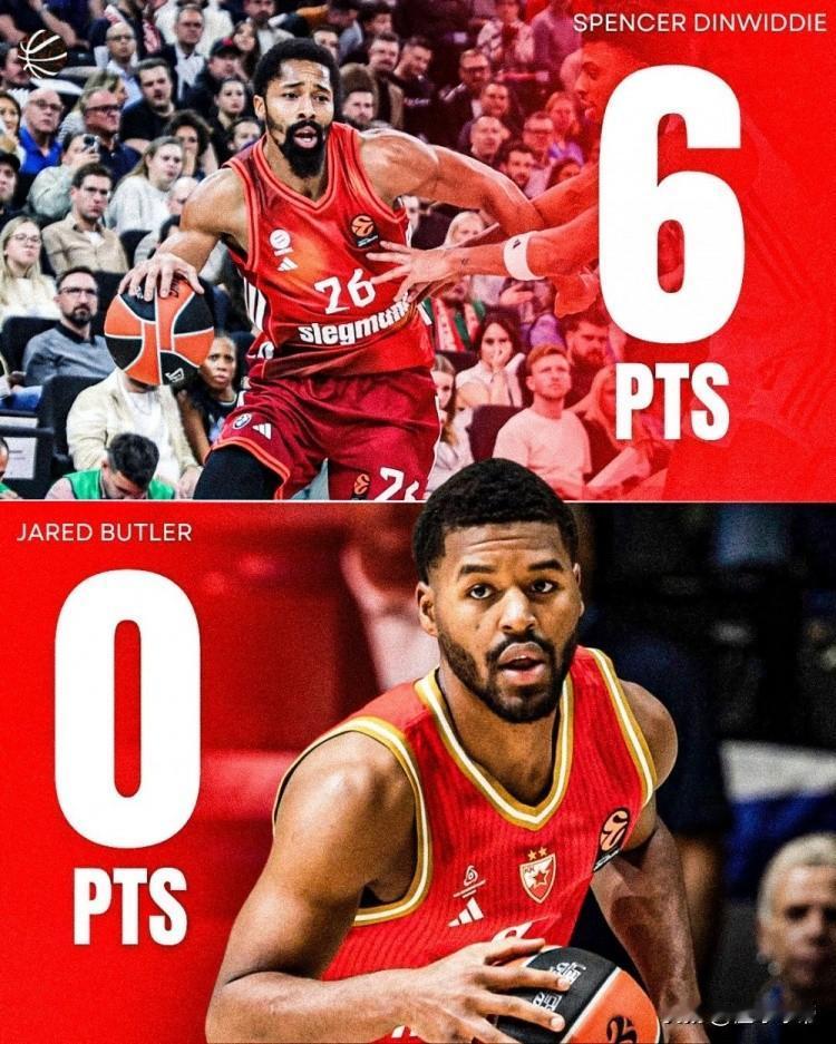 其他NBA球员去了欧洲联赛都是降维打击,而丁威迪和巴特勒却被打击了! 在今天凌晨进行的两场欧篮联比赛中,前NBA球员丁威迪和贾里德-巴特勒都迎来了各自的欧篮联首秀,结果丁威迪代表拜仁出场20分钟,投篮7中1只拿到6分3助攻的数据。而代表红星只出场2分钟,只贡献了2次犯规。 要知道丁威迪可是NBA得分悍将,曾经在NBA多次拿到高分,没想到去了欧洲联赛却还不如NBA呢。巴特勒更不用说,季前赛对阵湖人爆砍35分一战成名,没想到在欧洲联赛连杨瀚森都不如,怪不得当初NBA没有球队要呢。 丁威迪和巴特勒真的是给NBA丢人了,其他NBA球员去欧洲联赛都是各种降维打击,只有丁威迪和巴特勒被打击了。