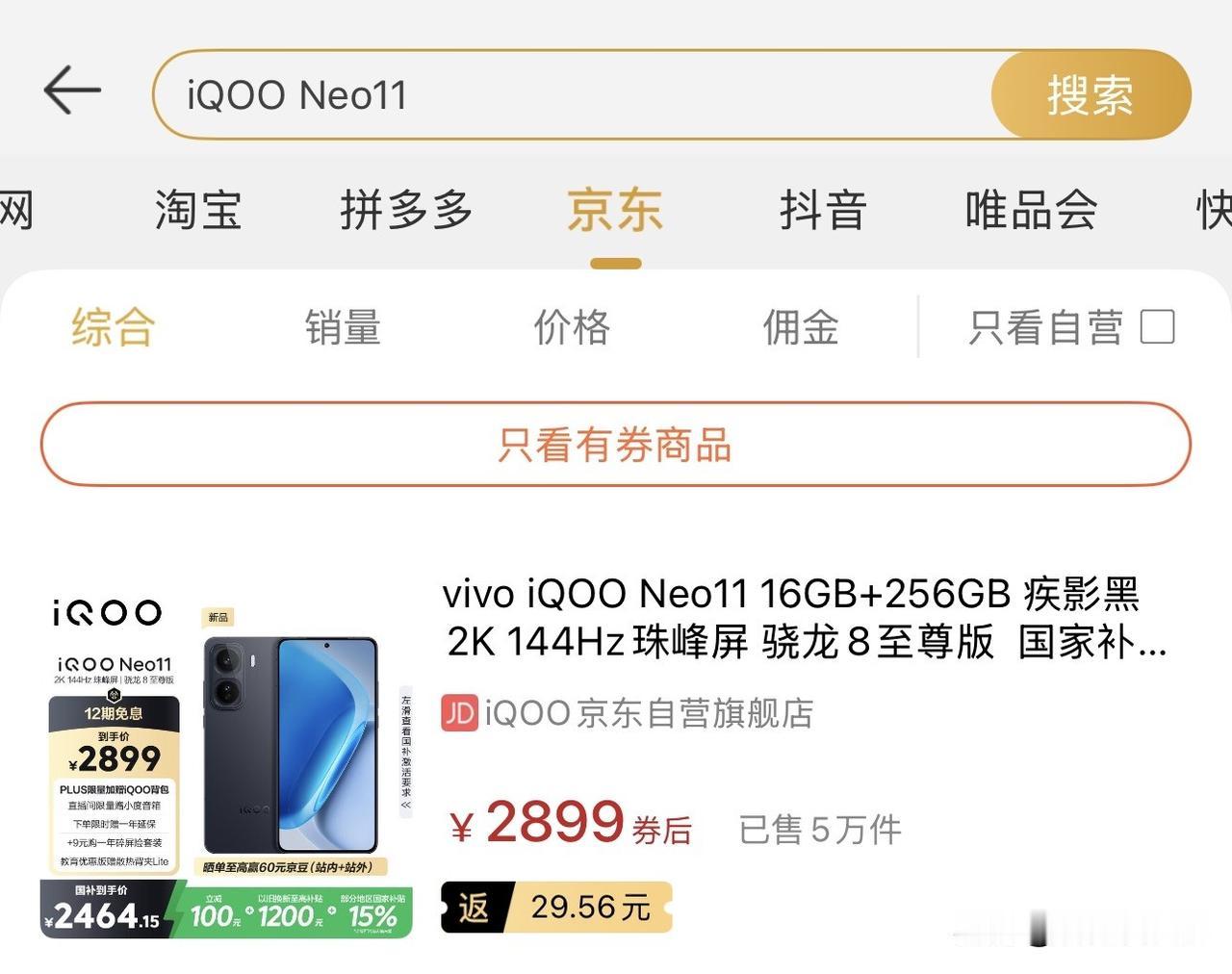 蓝厂今年爆品连连,昨晚发布的 iQOO Neo11,首销半小时销量为 iQOO Neo10 的200%,开售 2 小时销量超过 iQOO Neo10 全天销量,一杯销量超过上一代 iQOO Neo10 Pro、iQOO Neo10 两台机型的销量 看了下数据,光某东自营一家店就卖了 5 万台,确实相当猛![灵光一闪]