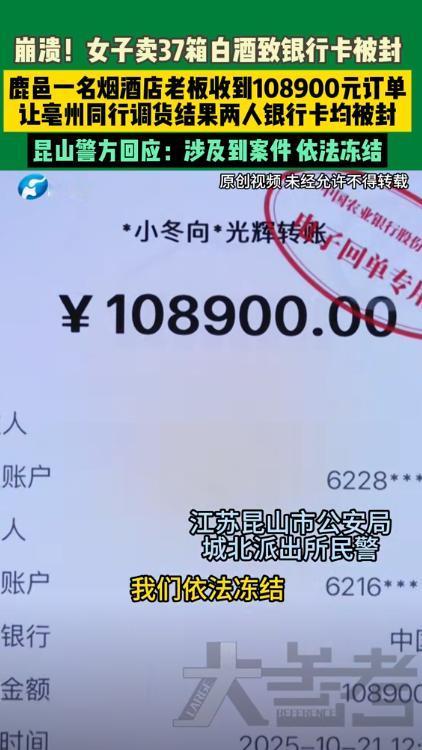 崩溃!河南鹿邑,女子卖37箱白酒致银行卡被封!警方:“这是涉诈资金,依法冻结!”女子:“我正常卖酒,收款,这不是很正常的流程吗?为什么冻我的卡!我卖东西怎么知道他的钱“干净”不?”网友:这种事情屡次上演,难道就没办法了吗? 事情的起因是惠女士(化名)一直在经营酒水生意,凭借多年积累的客户和口碑,她的生意一直都稳定。 然而,最近却遇到了一个不同寻常的客户,那天她接收到一名陌生男子的来电,这名男子没有像大多数客户那样直接挑选商品,而是开门见山地说:“我要定三十七箱酒。” 惠女士先是愣了一下,心想这单生意不小,而且数量也挺奇特,就问他是干什么用的,这时候男子说是办酒席用的,他们那边买不到了所以朋友给了一个惠女士的电话,就想打电话问问。 惠女士听了之后就觉得这件事情必须要帮,办酒席可不能错过了,于是就立马联系了朋友的店铺,说让朋友帮忙运送一下,因为酒水生意不能跨区配送。 紧接着男子将三十七箱酒的货款打了过了之后,就立马交代朋友开始配送,并要求朋友一定要确保这三十七箱酒能够按时送到。 酒送到之后,惠女士也就将这一笔钱给朋友转了过去,谁料过了几天之后来两人的银行卡都被冻结了,这令惠女士很纳闷。 然而就在这时,惠女士接到了警方的电话,这时候警方说这笔订单所涉及的款项被怀疑是诈骗资金,属于非法资金流动,所以依法对相关账户进行了冻结。 听到这里,惠女士的心脏猛地一跳,脑海中瞬间浮现出那个陌生男子,她开始回想起那个男子的说话方式,似乎有些急切,却又故作镇定,几乎没有什么关于付款的直接交流。 挂掉电话后,惠女士感到一阵迷茫和恐慌。 后来面对着十万多元的损失惠女士心里面很不舒服,联系了一位当地的记者,希望能够借助媒体的力量,让更多人了解她的无辜和困境。 记者赶到时,惠女士见到记者,她的情绪终于崩溃,眼泪忍不住滑落下来,她哽咽着说道,声音颤抖,说小本生意这十万元对她来说很重要。 惠女士一边说着,一边擦拭眼角的泪水,她的脸上写满了无助和愤怒。 记者看到之后心里面也很不是滋味,于是就立马联系了办案警方进行了进一步的调查和协商。 事后很多网友刷到了这件事情之后,一些网友在下面评论说,现在与很多这样的人,所以在交易的时候一定要警戒一些,也有一些网友说,十万元对于一个普通家庭可不是小数目,一定要找到这名男子严厉的惩罚。 对于惠女士来说,卖酒、收款,按理说是非常正常的商业流程,但她却因一次看似平常的交易,陷入了警方调查和账户冻结的困境。 这不仅让人质疑相关部门的监管机制是否需要更加精细化,更让我们深思,商户如何在合规与安全之间找到平衡。 尽管法律的严格执行是社会稳定的基石,但我们也应该反思,是否能提供更多的支持和保障,帮助无辜的商人避免因信息不对称或过于严格的资金监管而遭受不公正待遇。 对此,你还有什么看法呢? (信息来源 :大参考)