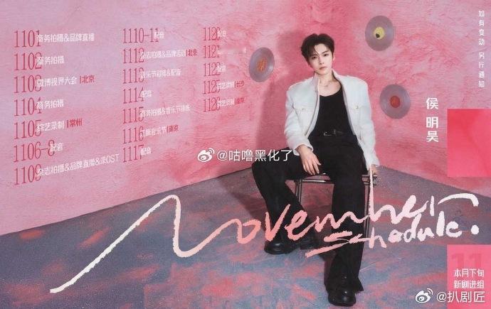 侯明昊十一月行程图 十一月的精彩已提前剧透!侯明昊的行程表既有影视创作的深耕,也有舞台绽放的期待,每一段旅程都藏着无限可能~