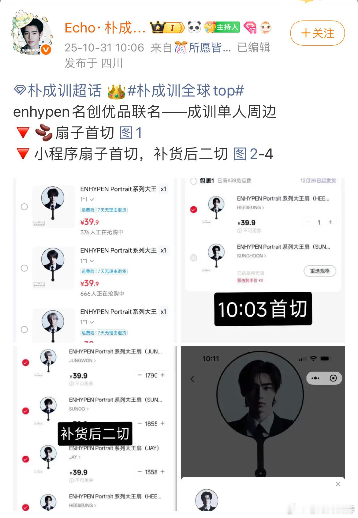 enhypen名创优品联名李羲承、朴成训完成售罄首切[手指比心]
